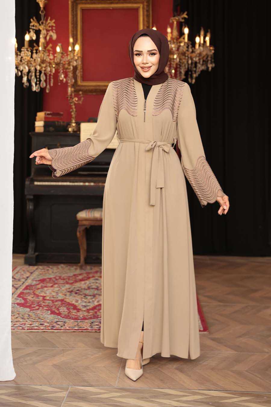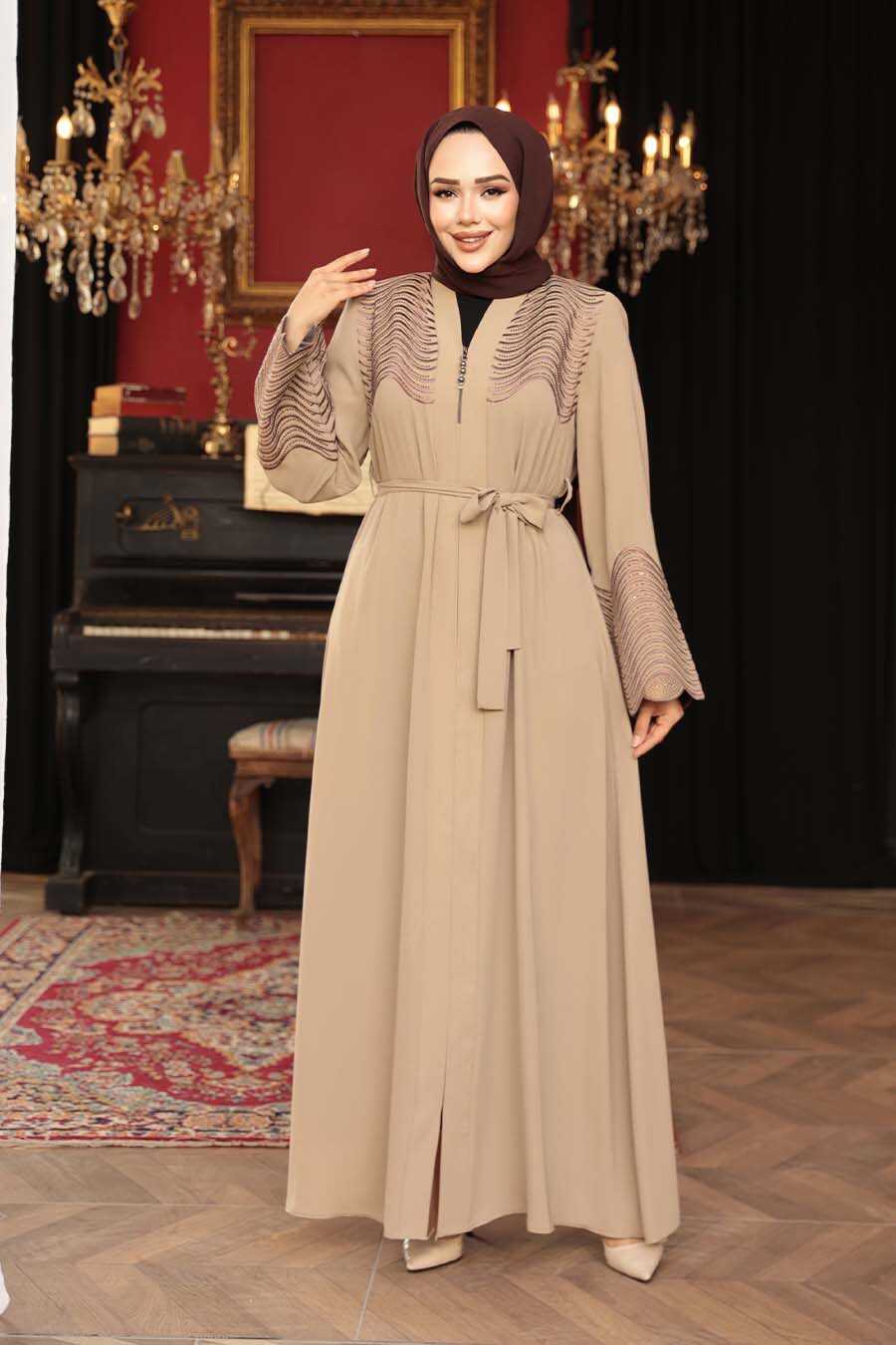 Bead Detailed Beige Modest Abaya 29105BEJ