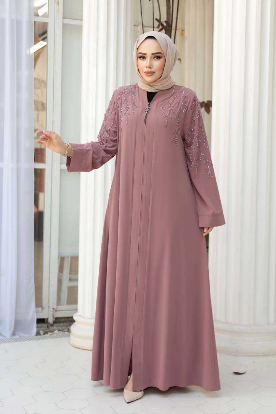 Bead Embellished Light Dusty Rose Modest Abaya 29110AGK