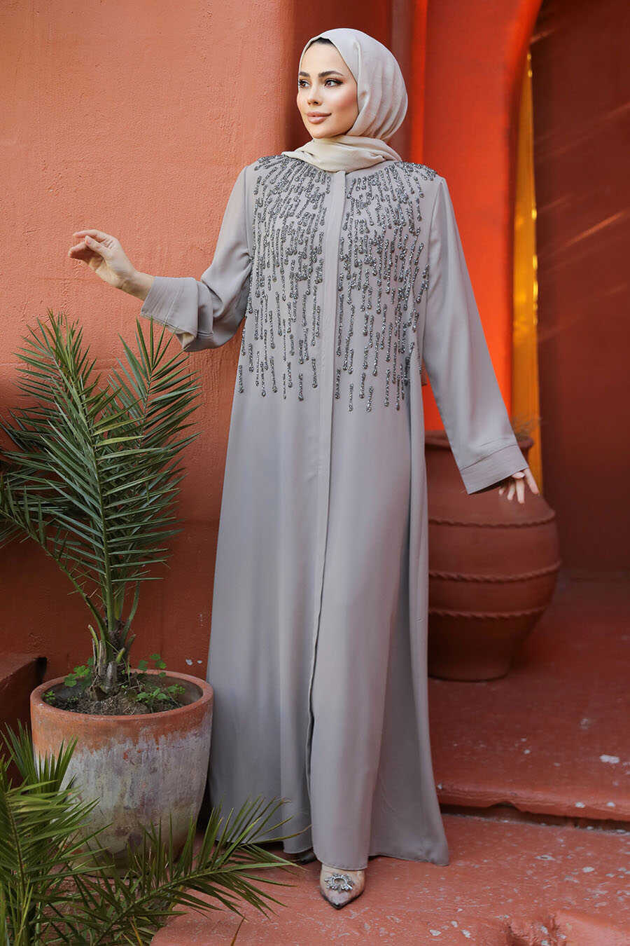 Beige Modest Dubai Abaya 29106BEJ