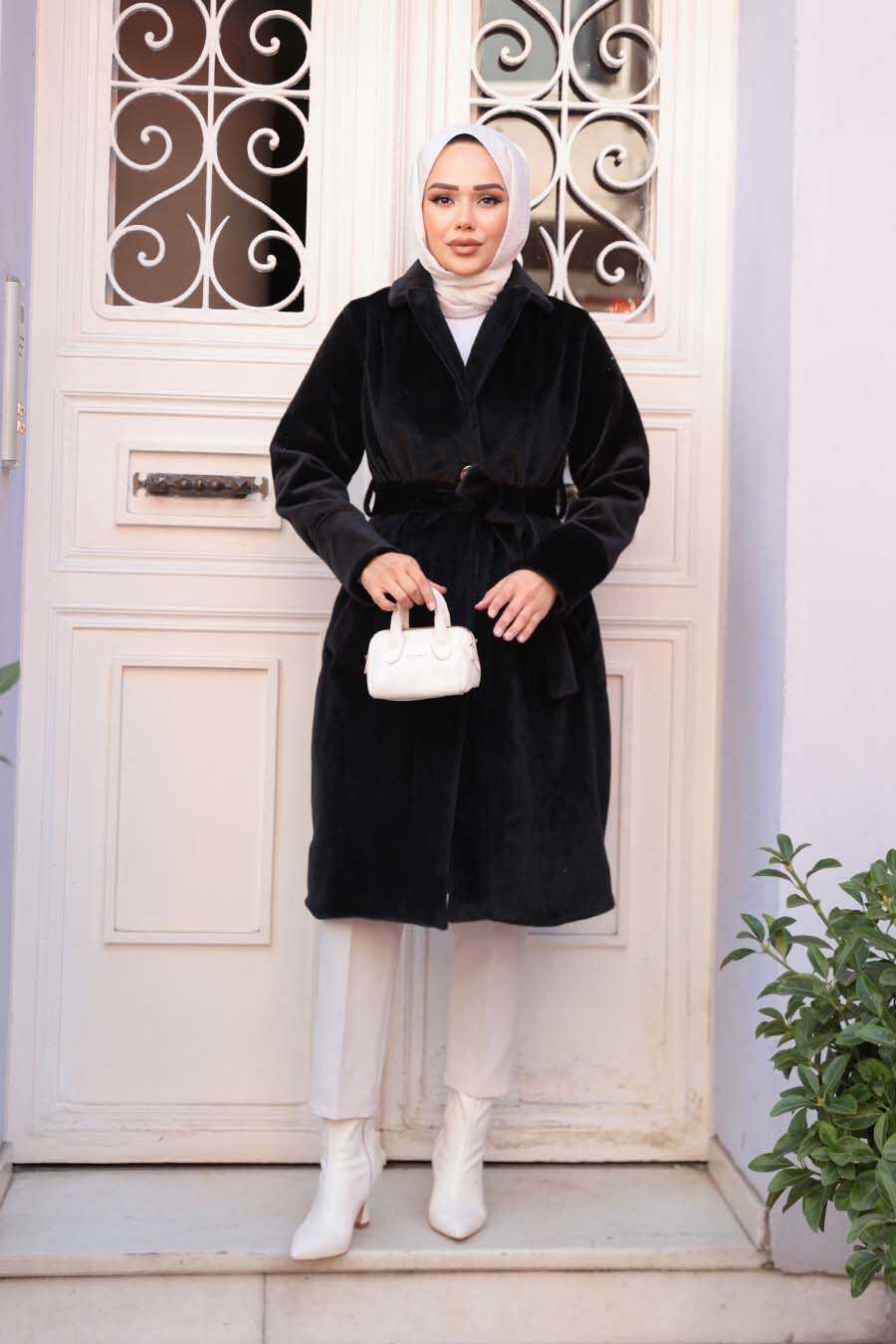 Ürün Özelliği: Klasik yaka, uzun kollu, cepli ve kendi kumaşından kemerlidir.