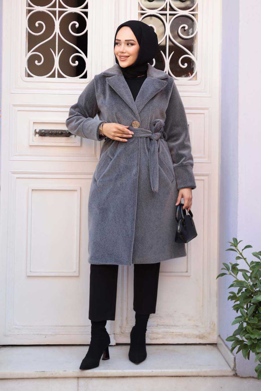 Ürün Özelliği: Klasik yaka, uzun kollu, cepli ve kendi kumaşından kemerlidir.