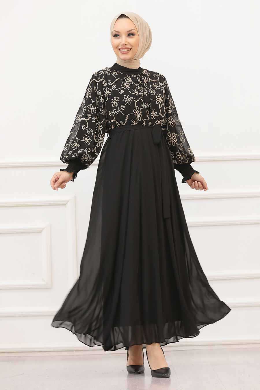 Black Hijab Evening Dress 51401S