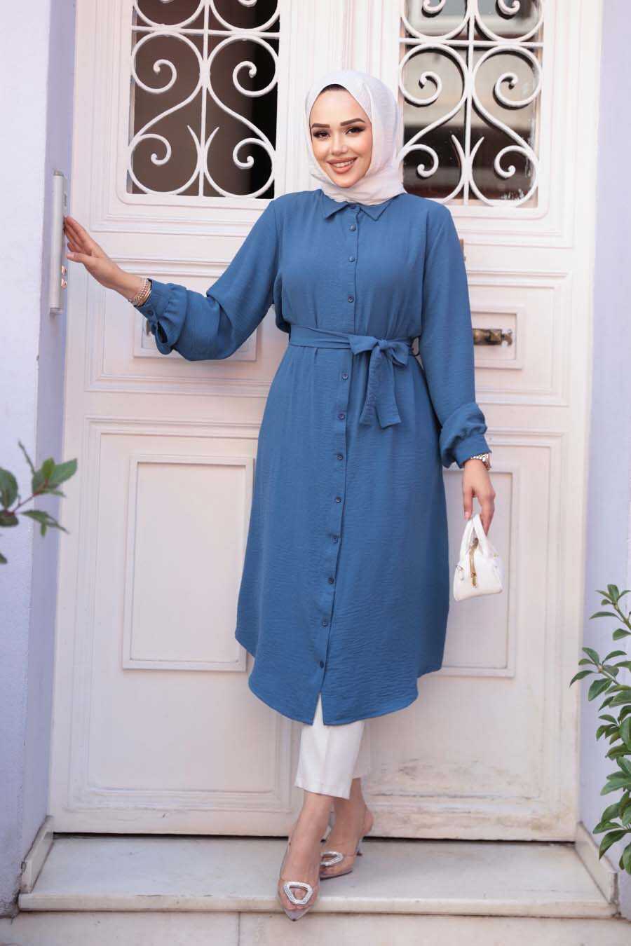Buttoned Indigo Blue Modest Tunic 32172IM
