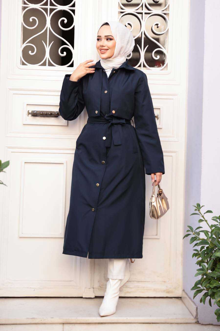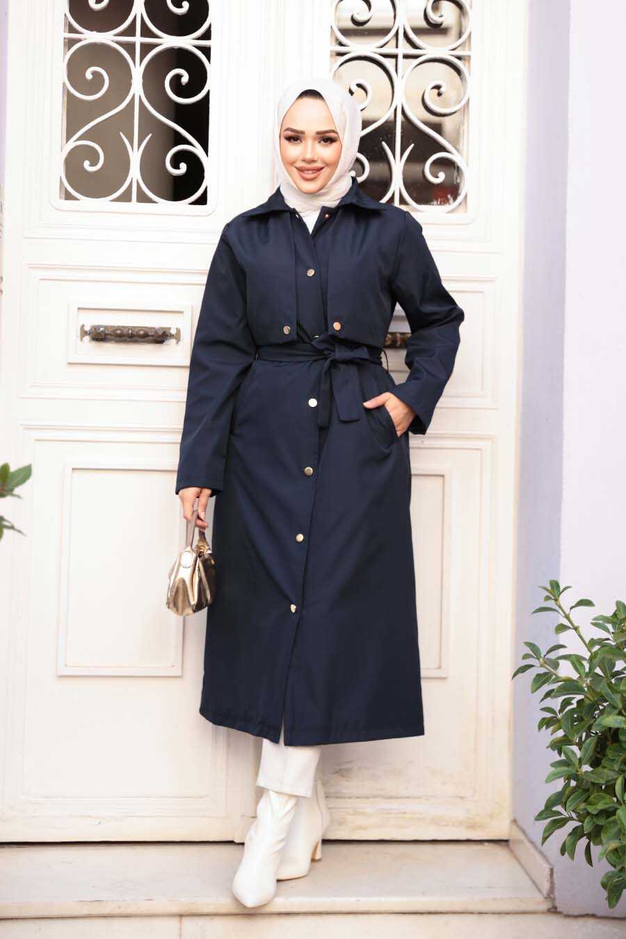Buttoned Navy Modest Trench Coat 62131L