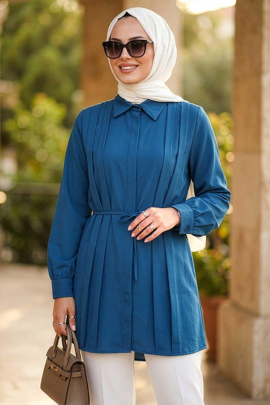 Buttoned Petrol Green Modest Tunic 20273PY