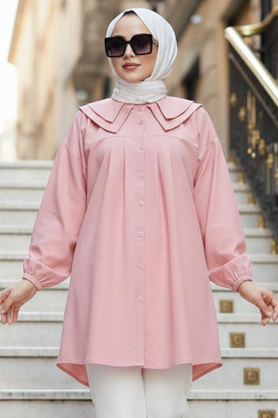 Buttoned Powder Modest Tunic 20228PD