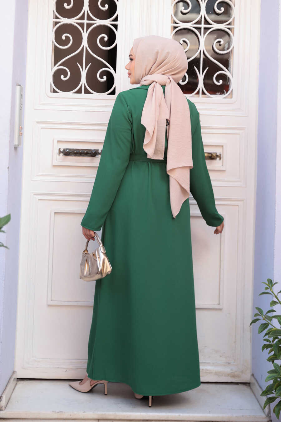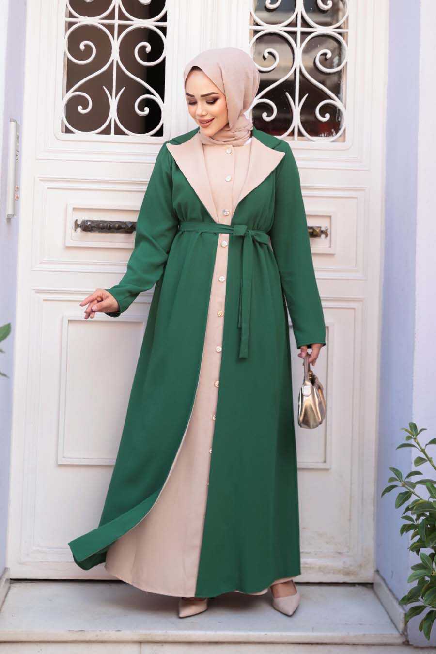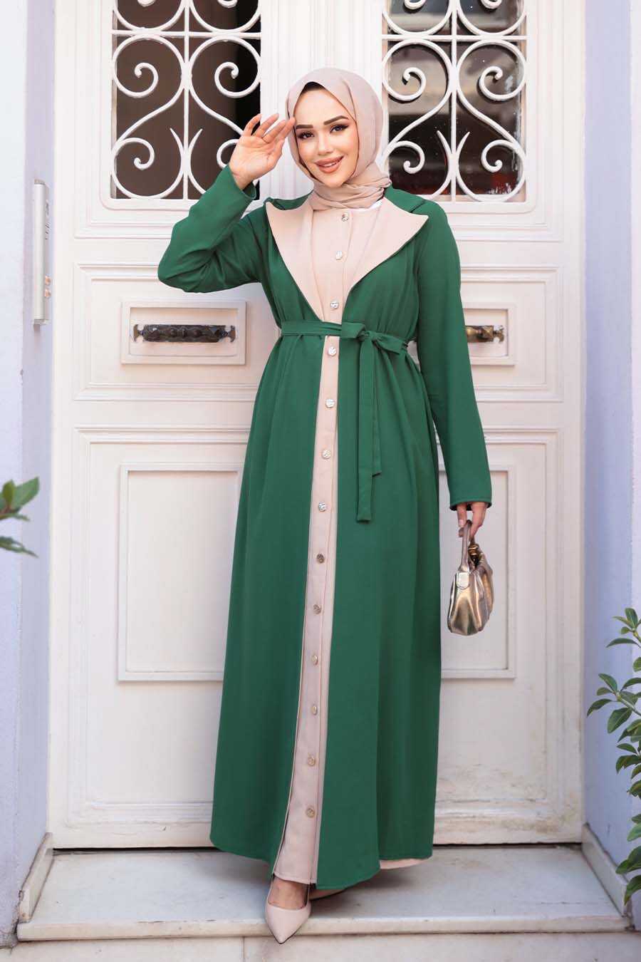 Cardigan Detailed Green Modest Dress 76351Y