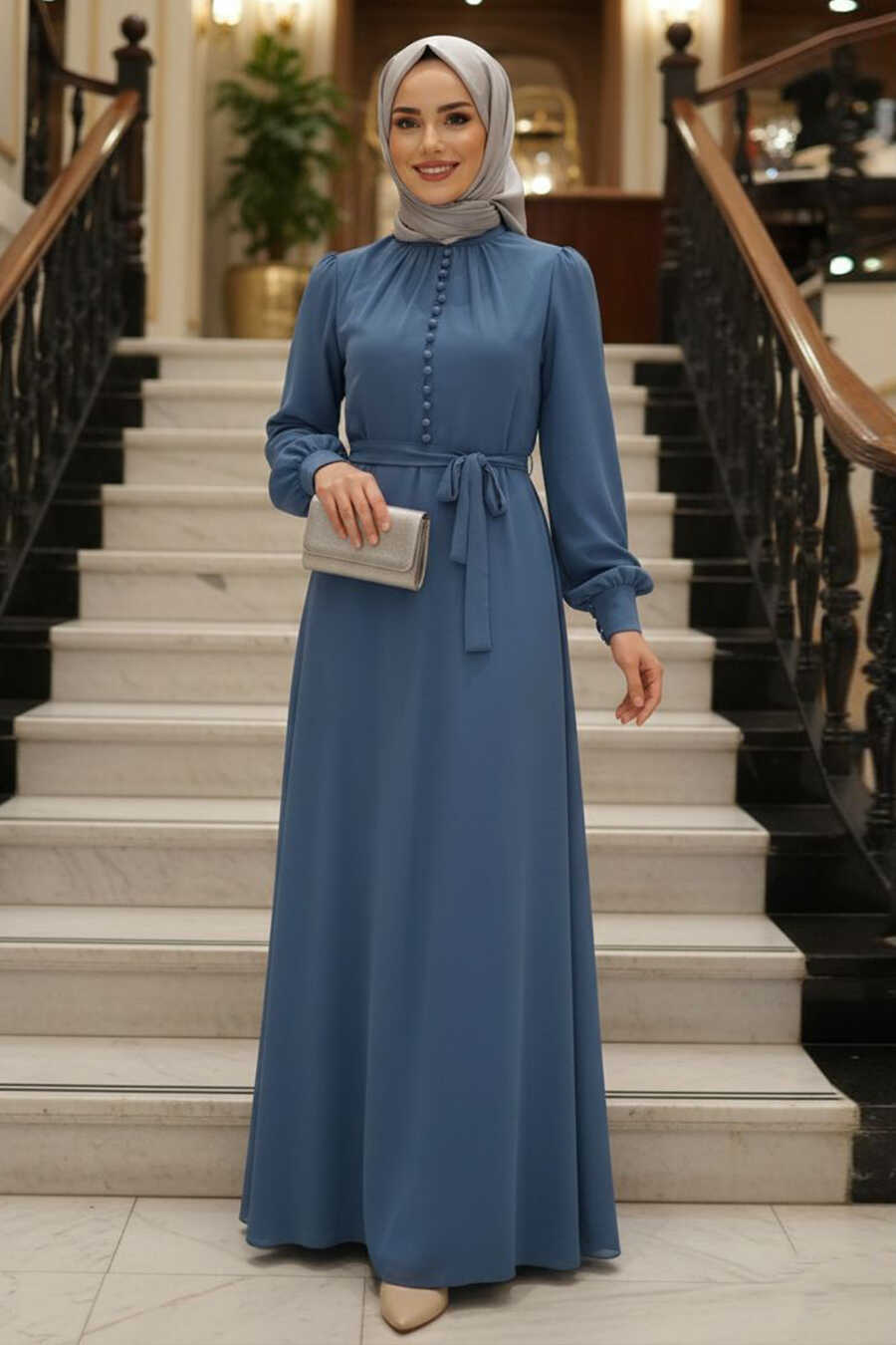 Dark Blue Hijab Dress 2703KM