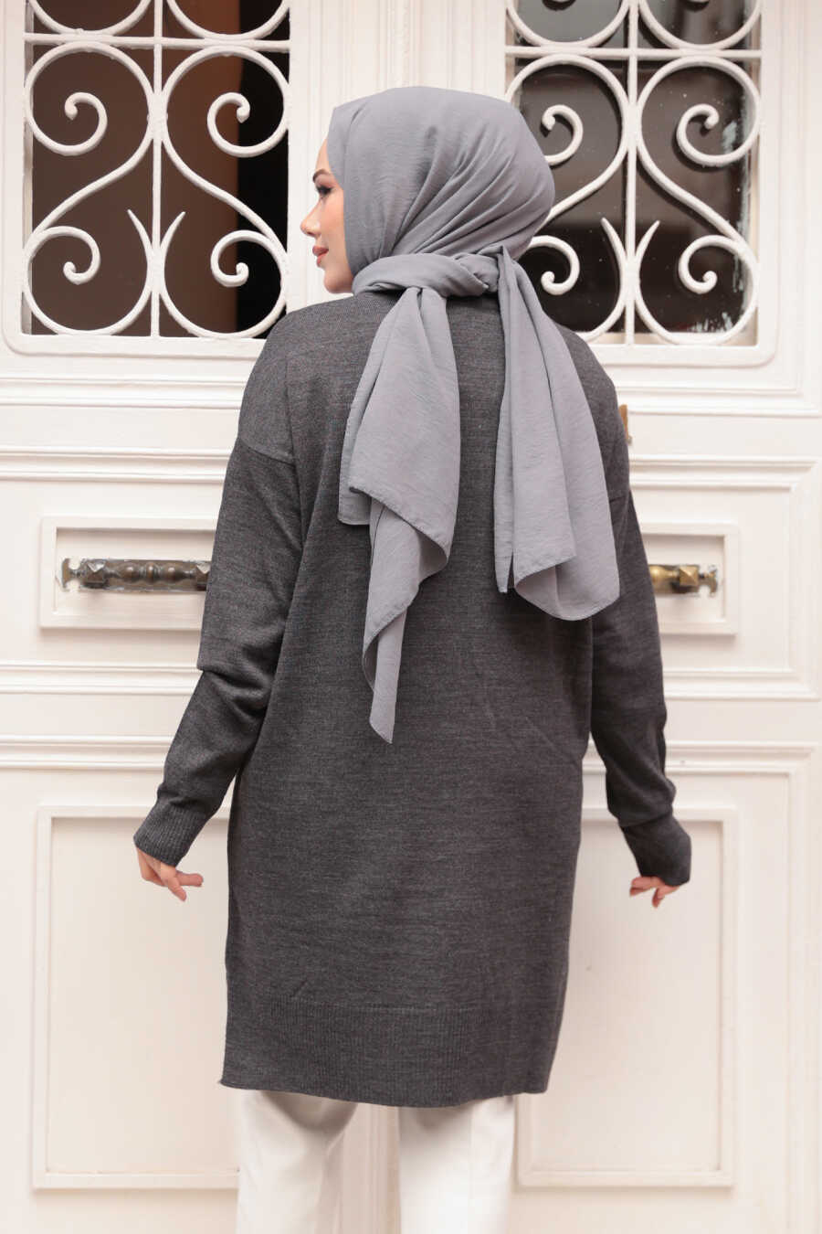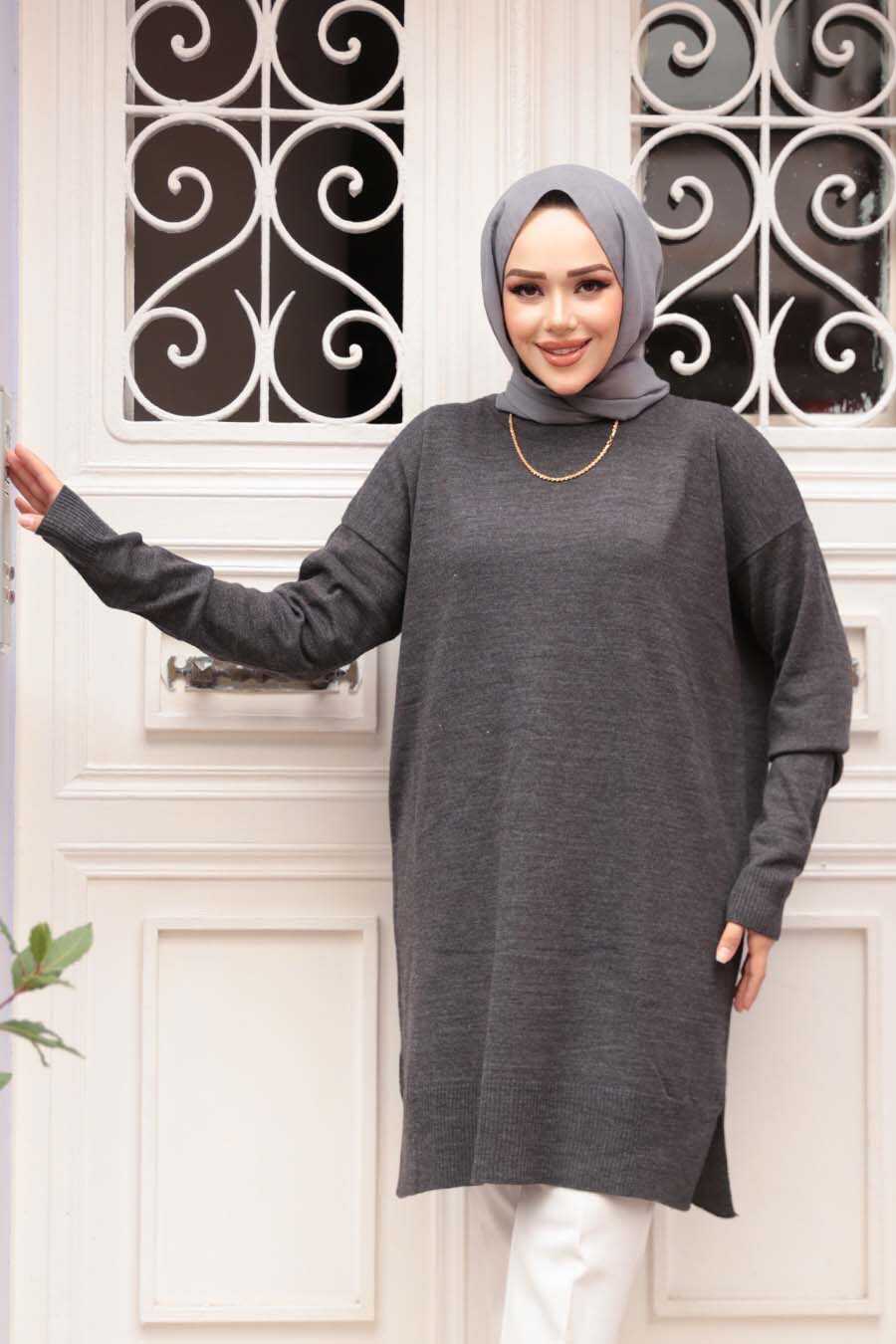 Dark Charcoal Knit Modest Sweater Tunic 17203KFU