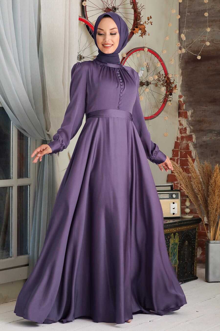 Dark Lila Hijab Evening Dress 25391KLILA
