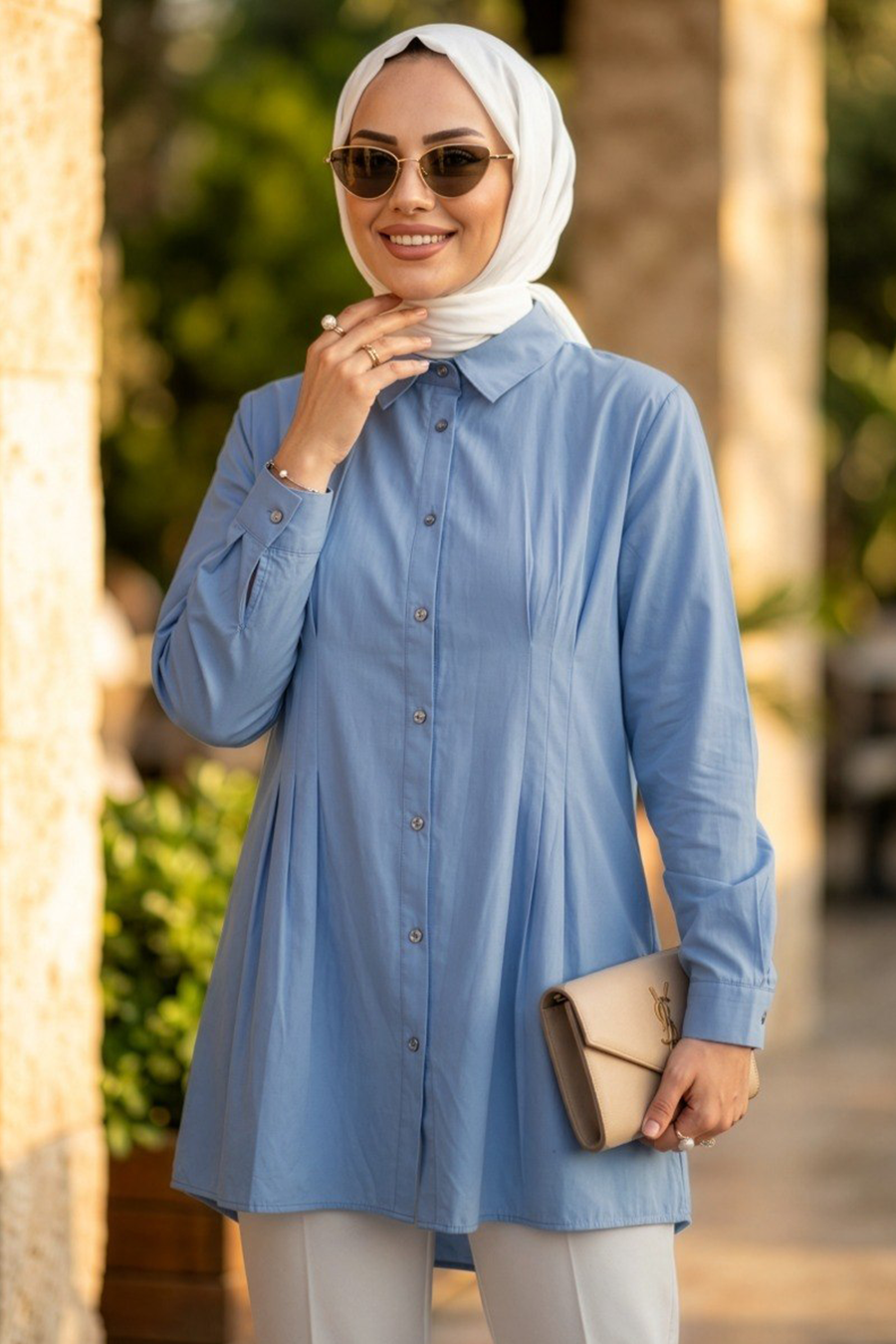 Dart Detail Blue Modest Tunic 10500M