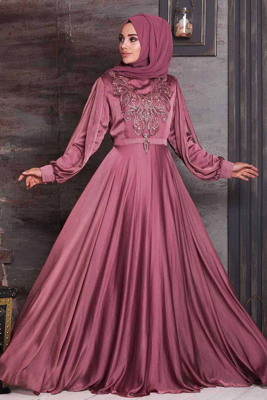 Dusty Rose Hijab Evening Dress 25777GK