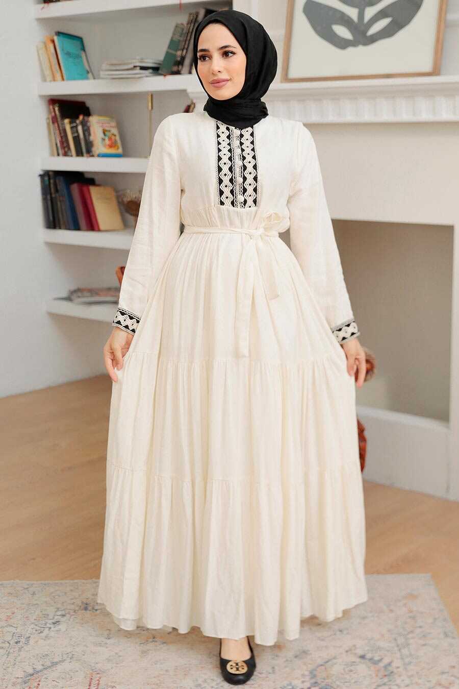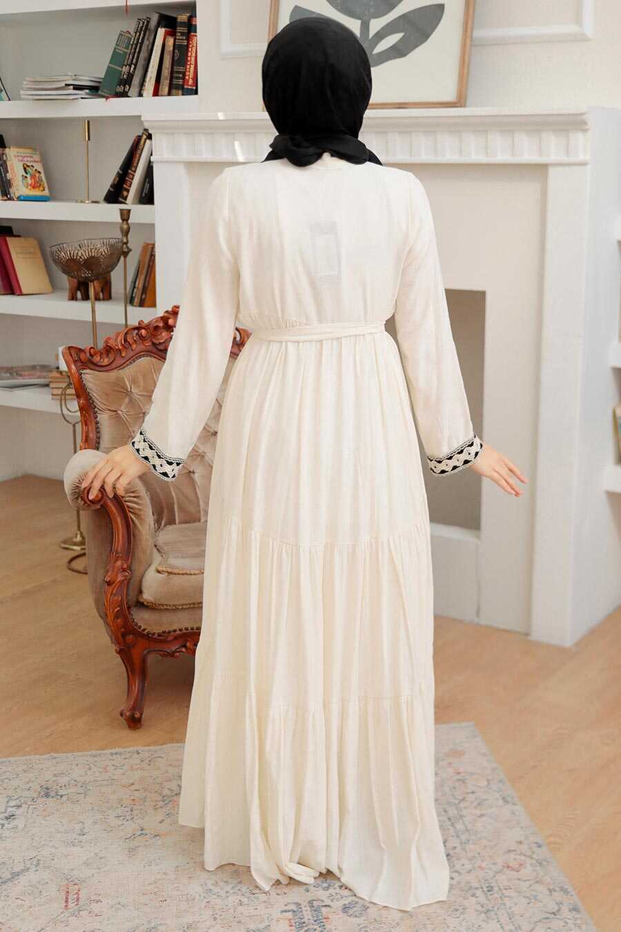 Ecru Hijab Dress 10369E