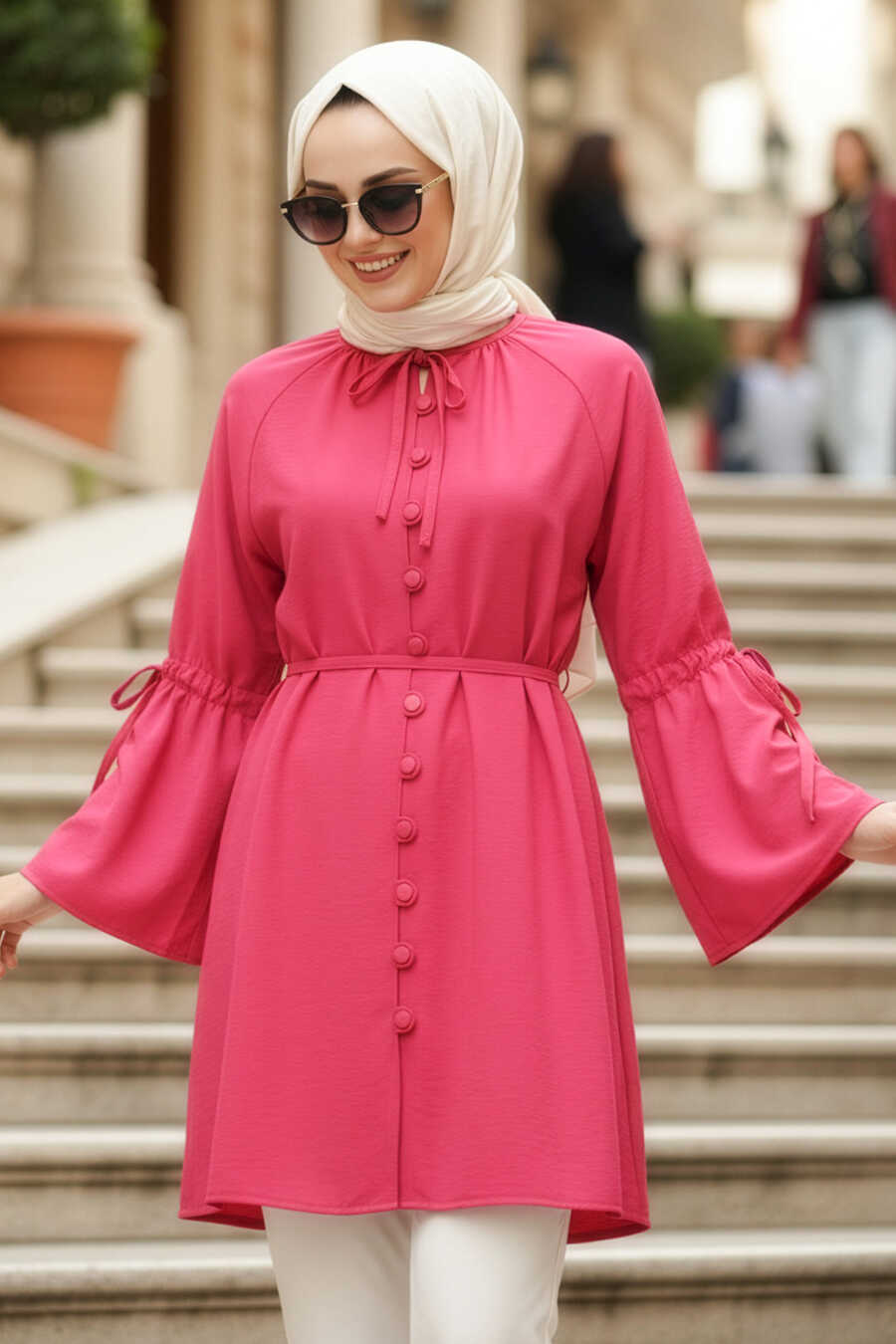 Flounce Sleeved Fuchsia Modest Tunic 20298F