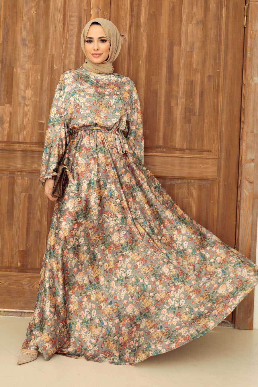 Khaki Hijab Dress 22167HK