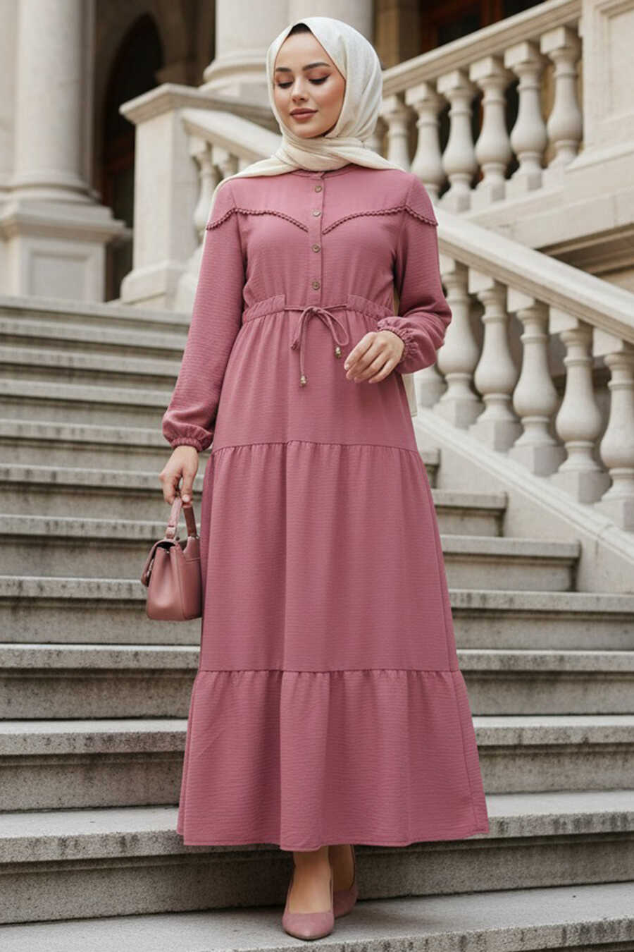 Layer Pleated Dusty Rose Modest Dress 10334GK