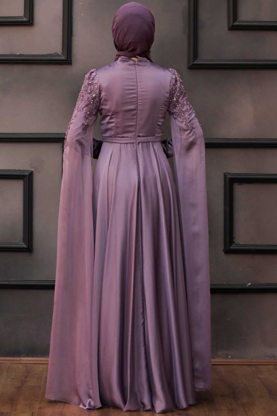 Satin Lila Islamic Bridesmaid Dress 21990LILA
