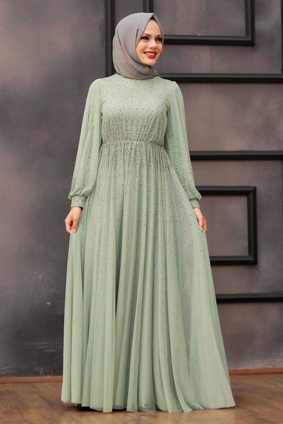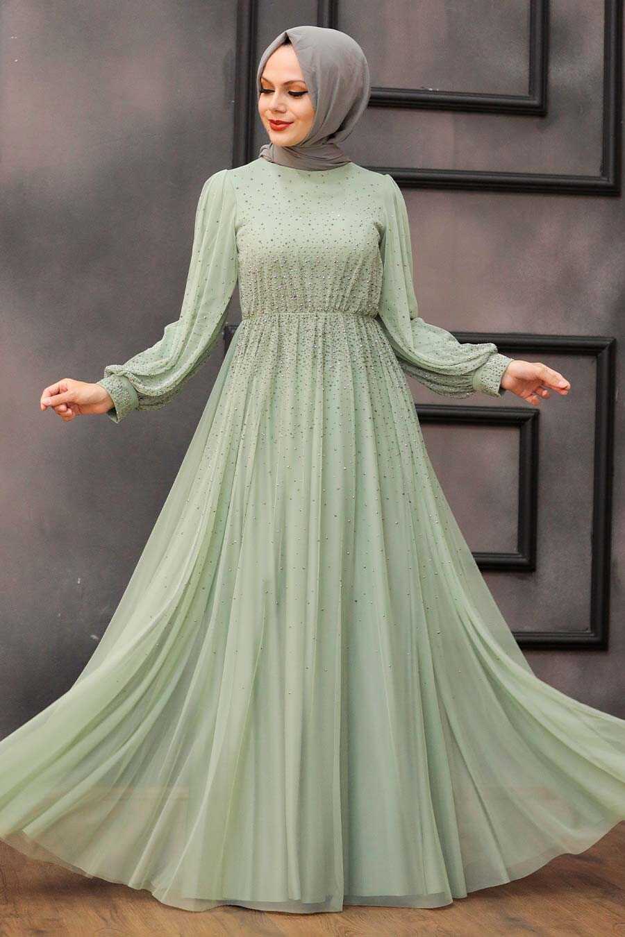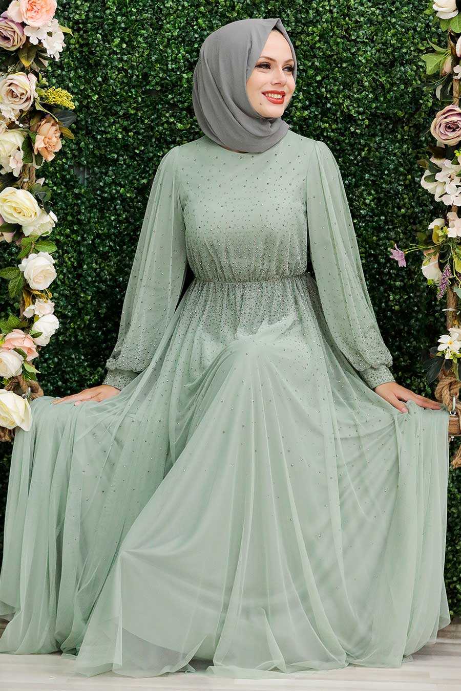 Mint Hijab Evening Dress 21501MINT