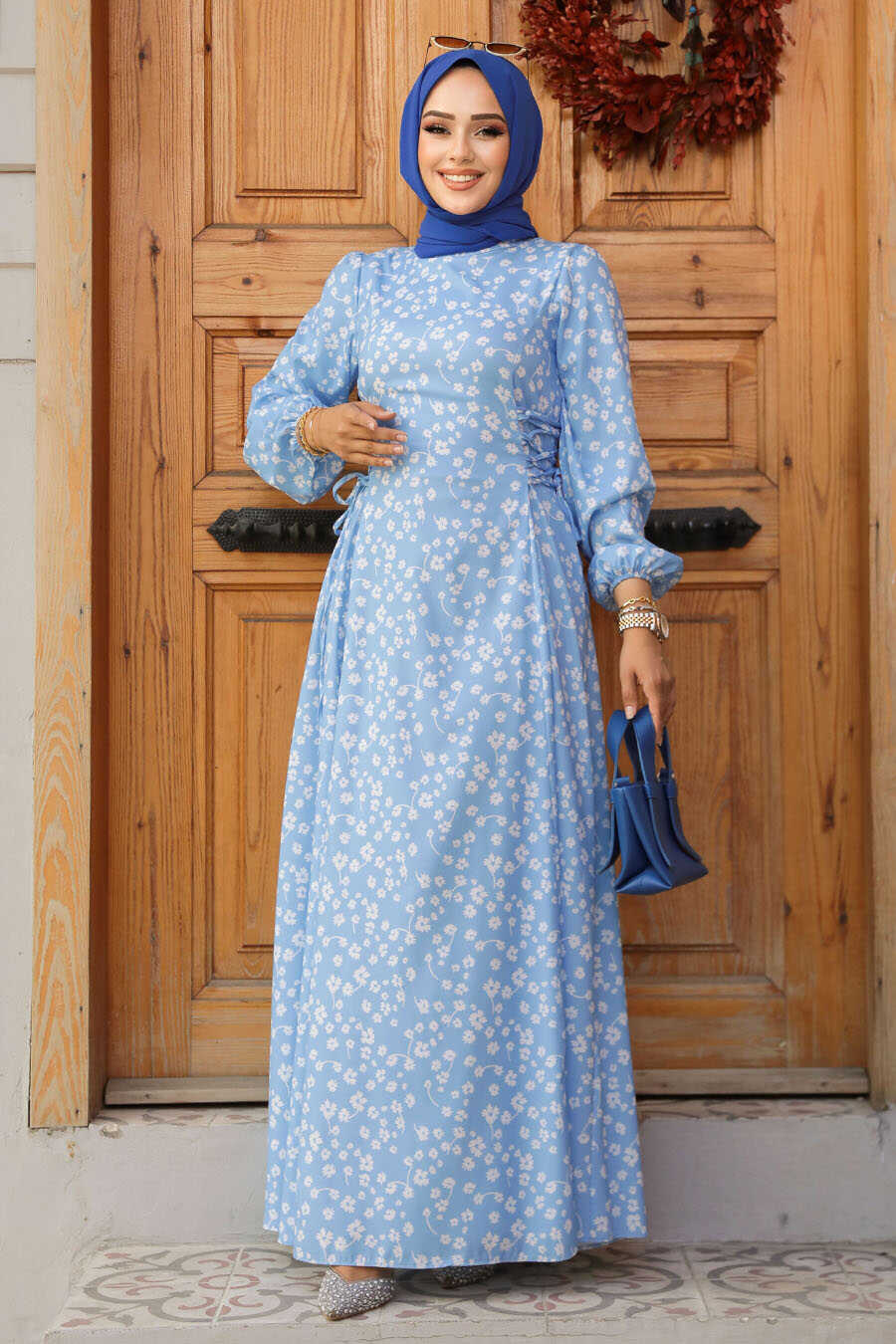 Modest Baby Blue Floral Dress 61073BM