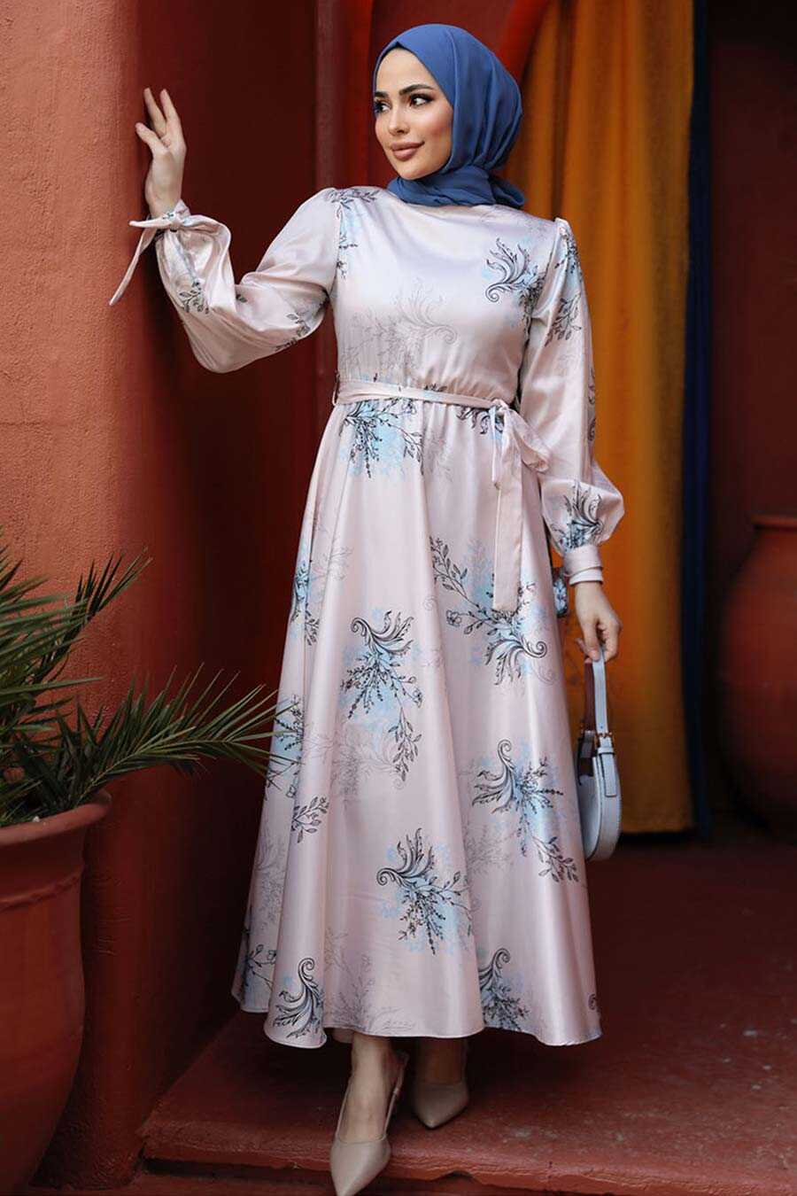 Modest Baby Blue Floral Long Sleeve Dress 60911BM