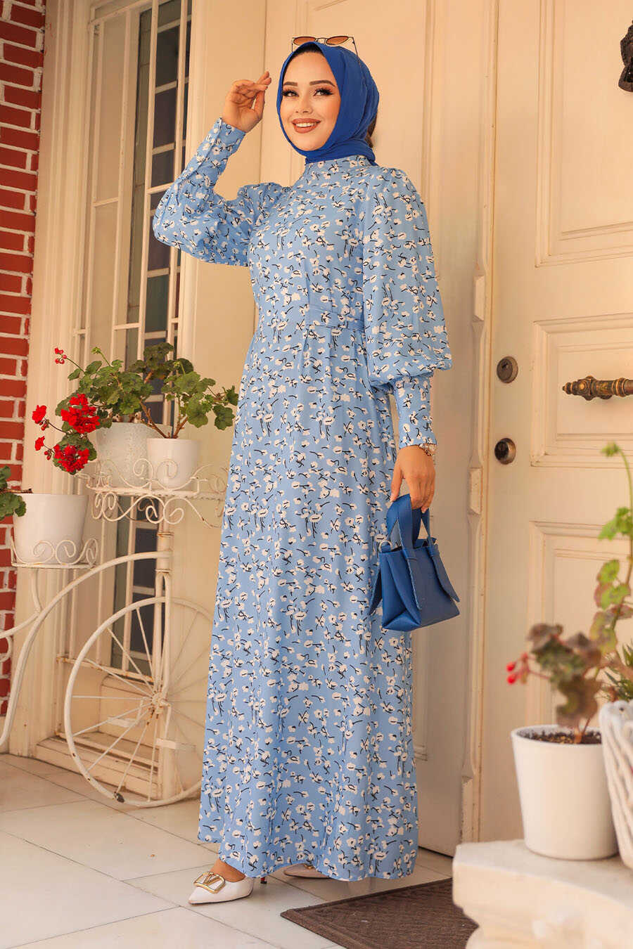 Modest Baby Blue Floral Maxi Dress 61092BM