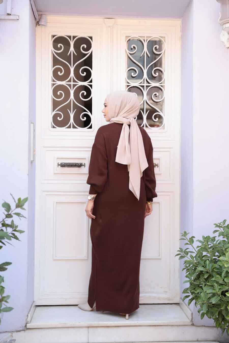 Modest Brown Knitwear Dress 17205KH