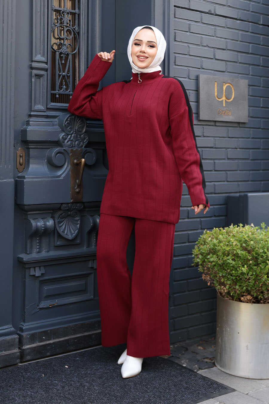 Modest Claret Red Knitwear Dual Suit 50163BR