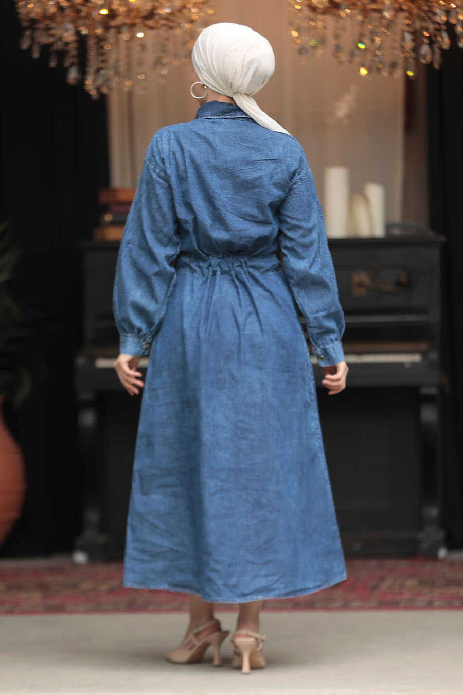 Modest Dark Blue Denim Dress 19102KM