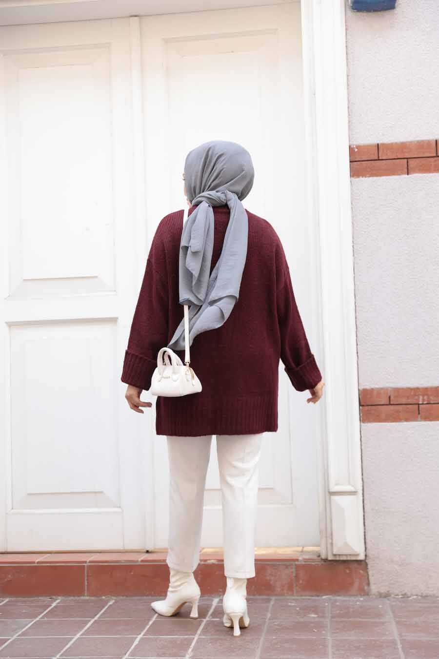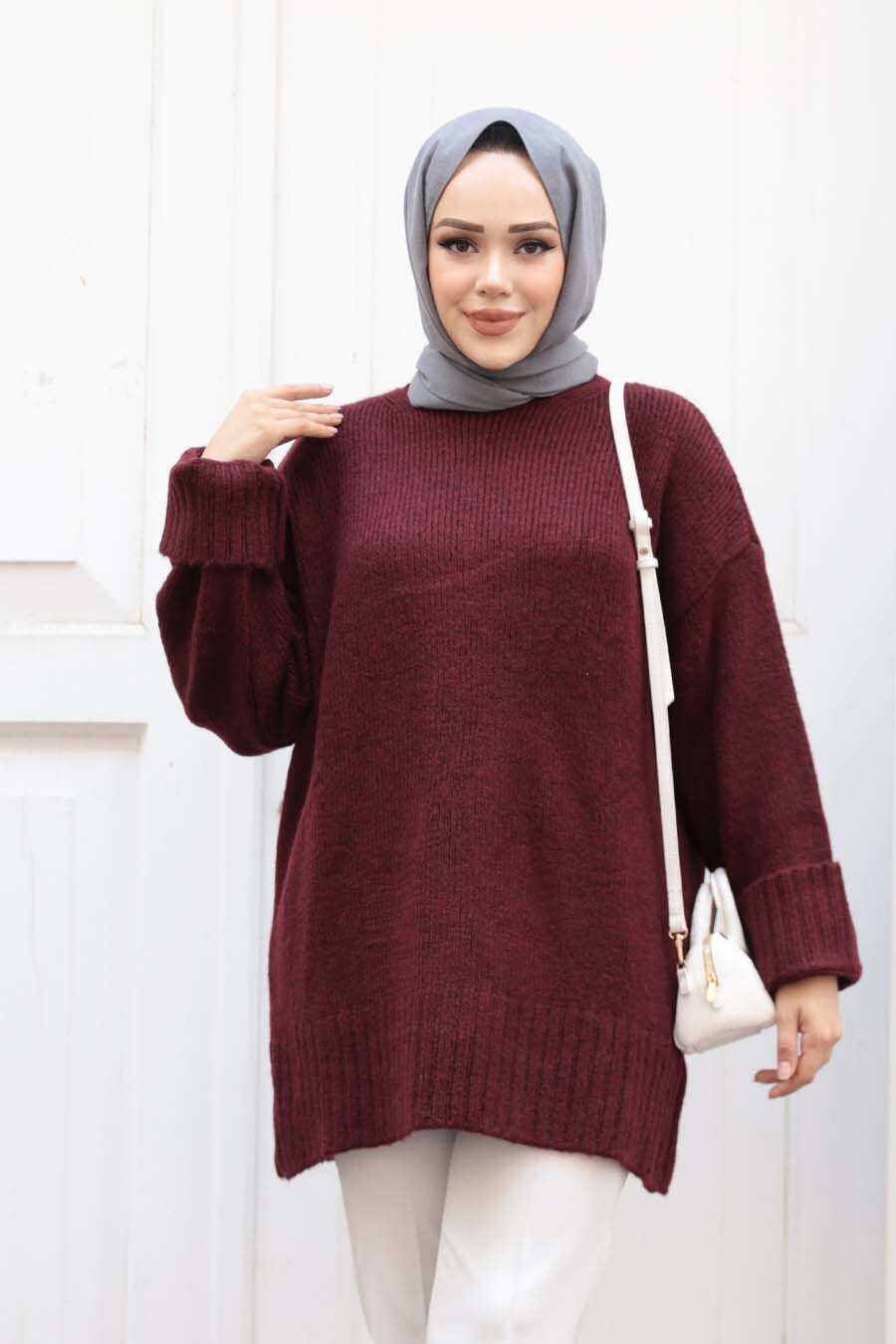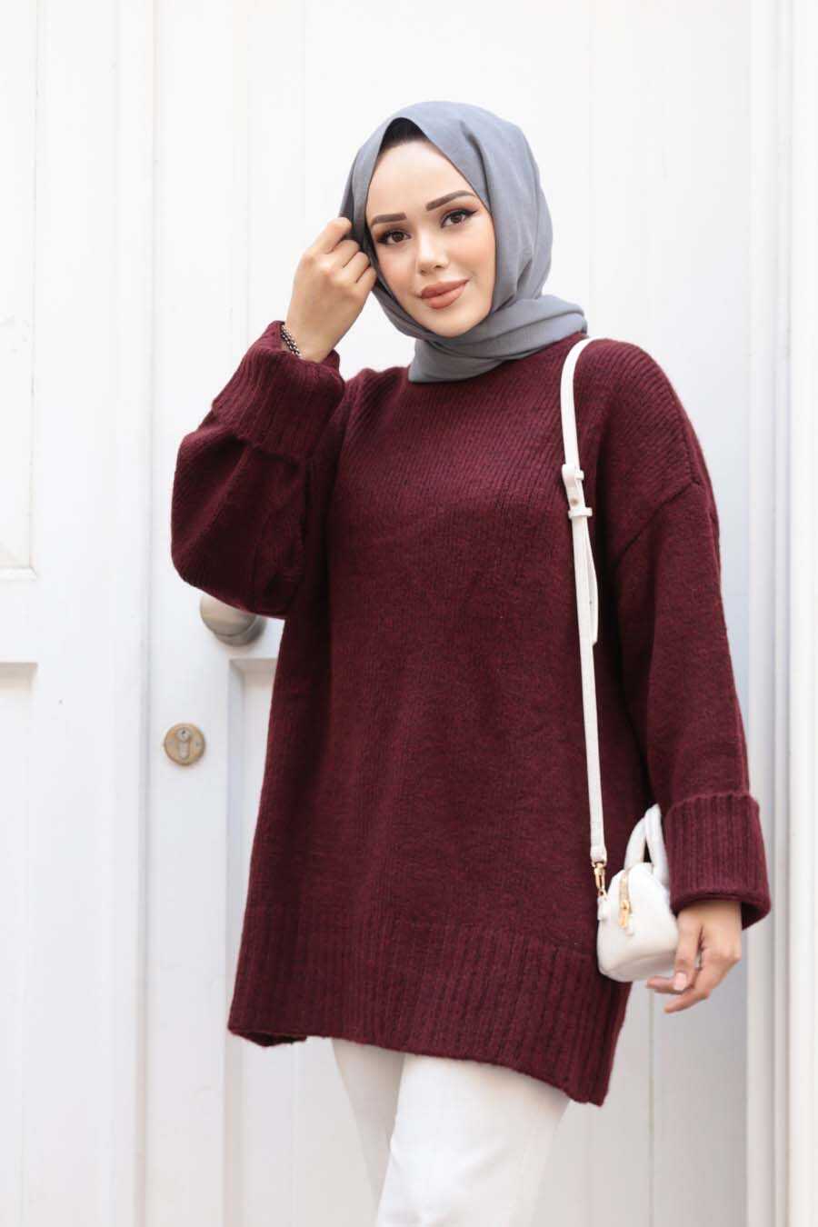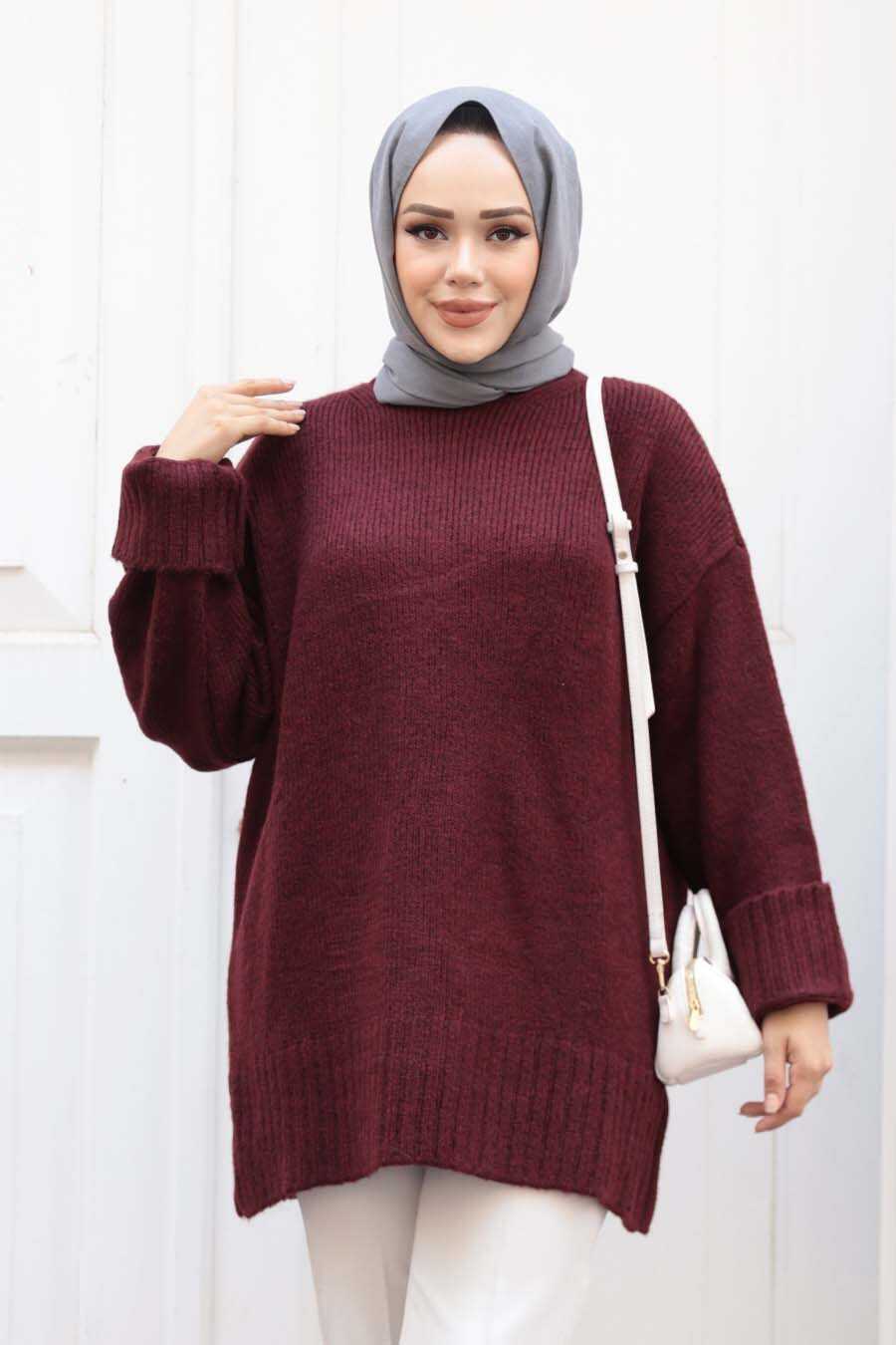 Modest Dark Claret Red Knitwear Jumper Top 87181KBR