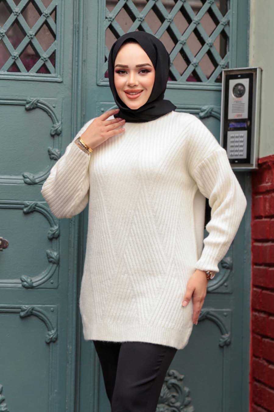 Modest Ecru Knitwear Tunic 7852E