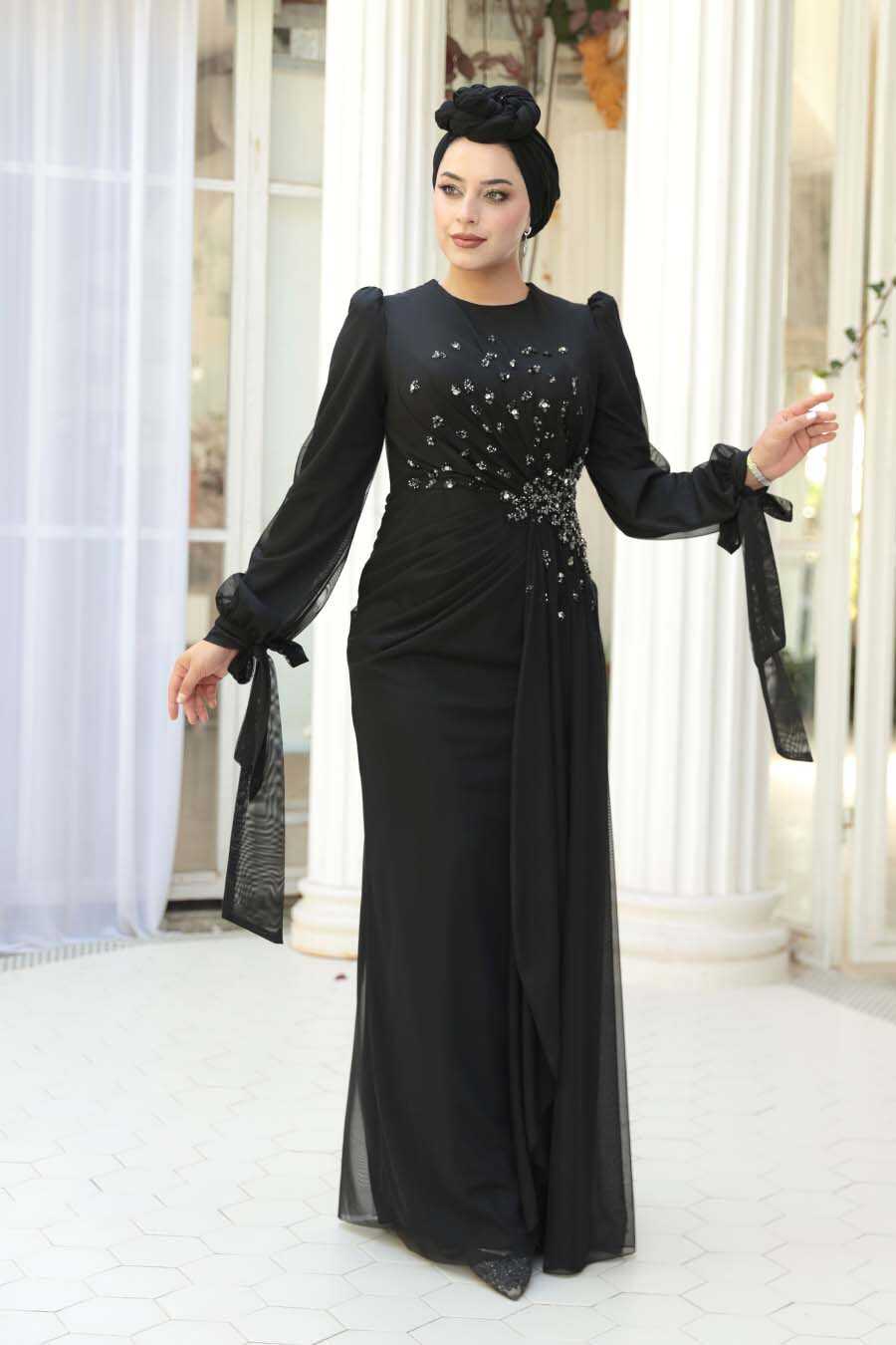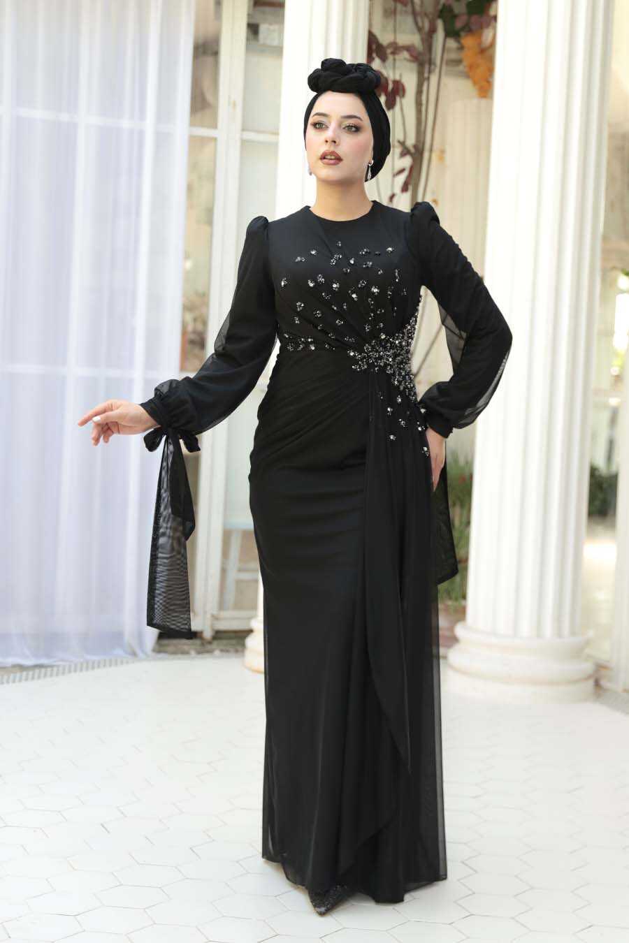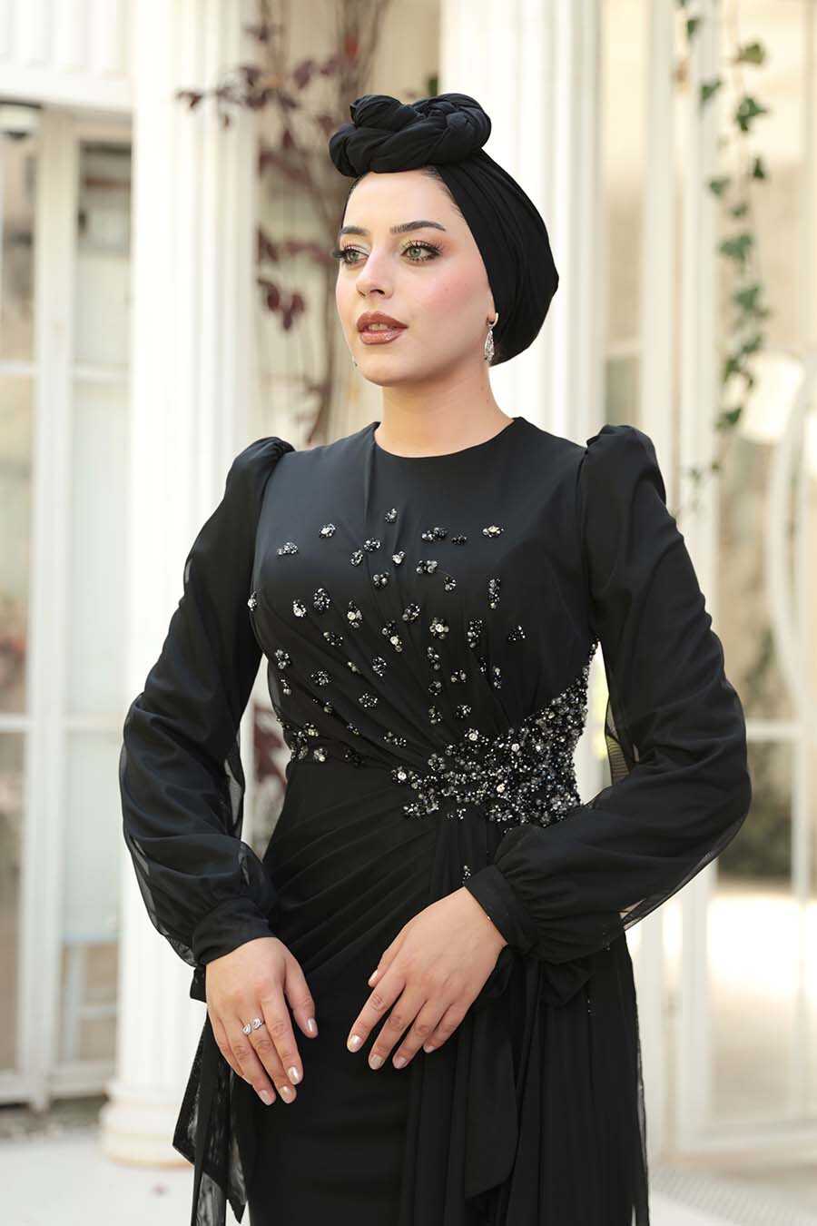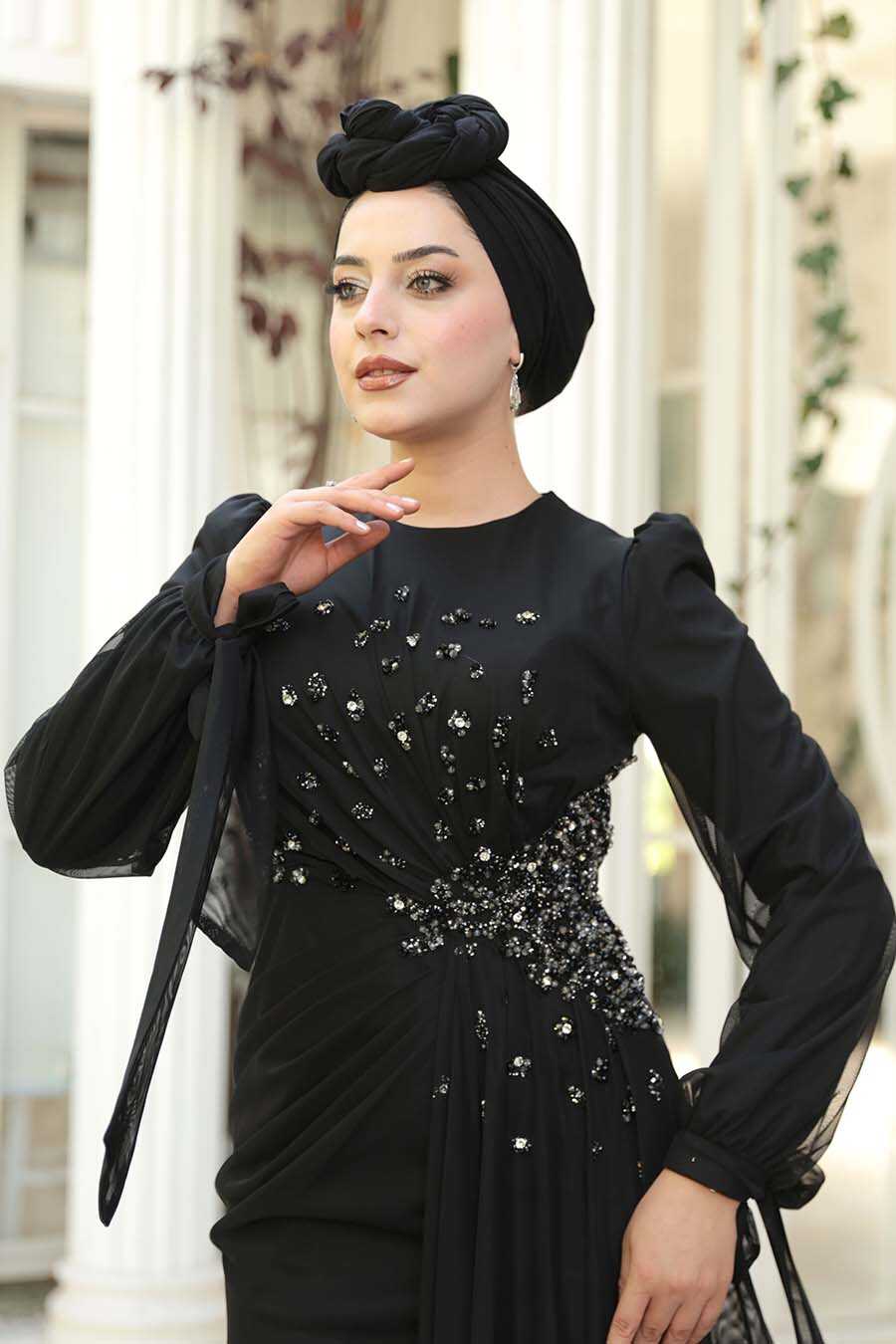 Modest Evening Dress - Bead Embellished Black Modest Evening Dress 53497S
