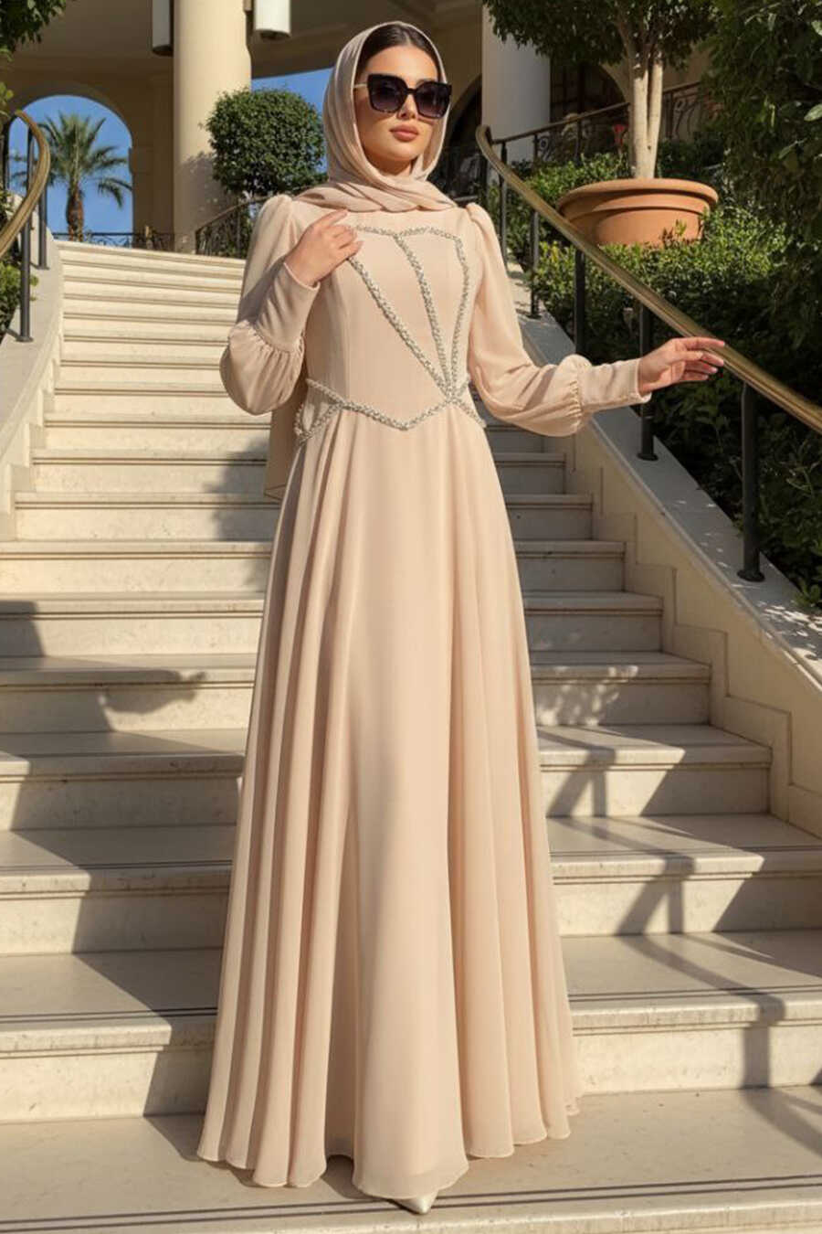 Modest Evening Dress - Beaded Detail Stone Modest Evening Dress 70148TAS