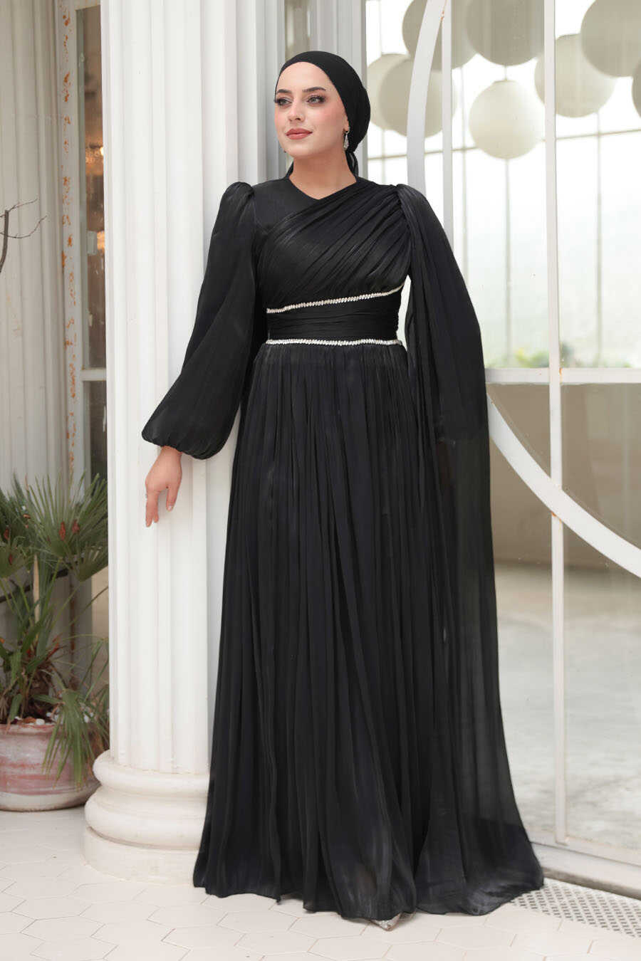 Modest Evening Dress - Cape Detailed Black Modest Evening Dress 53021S