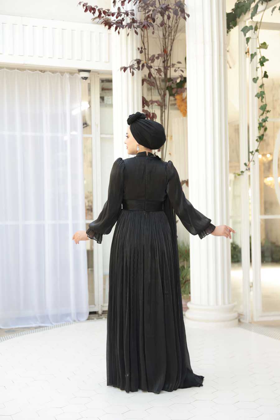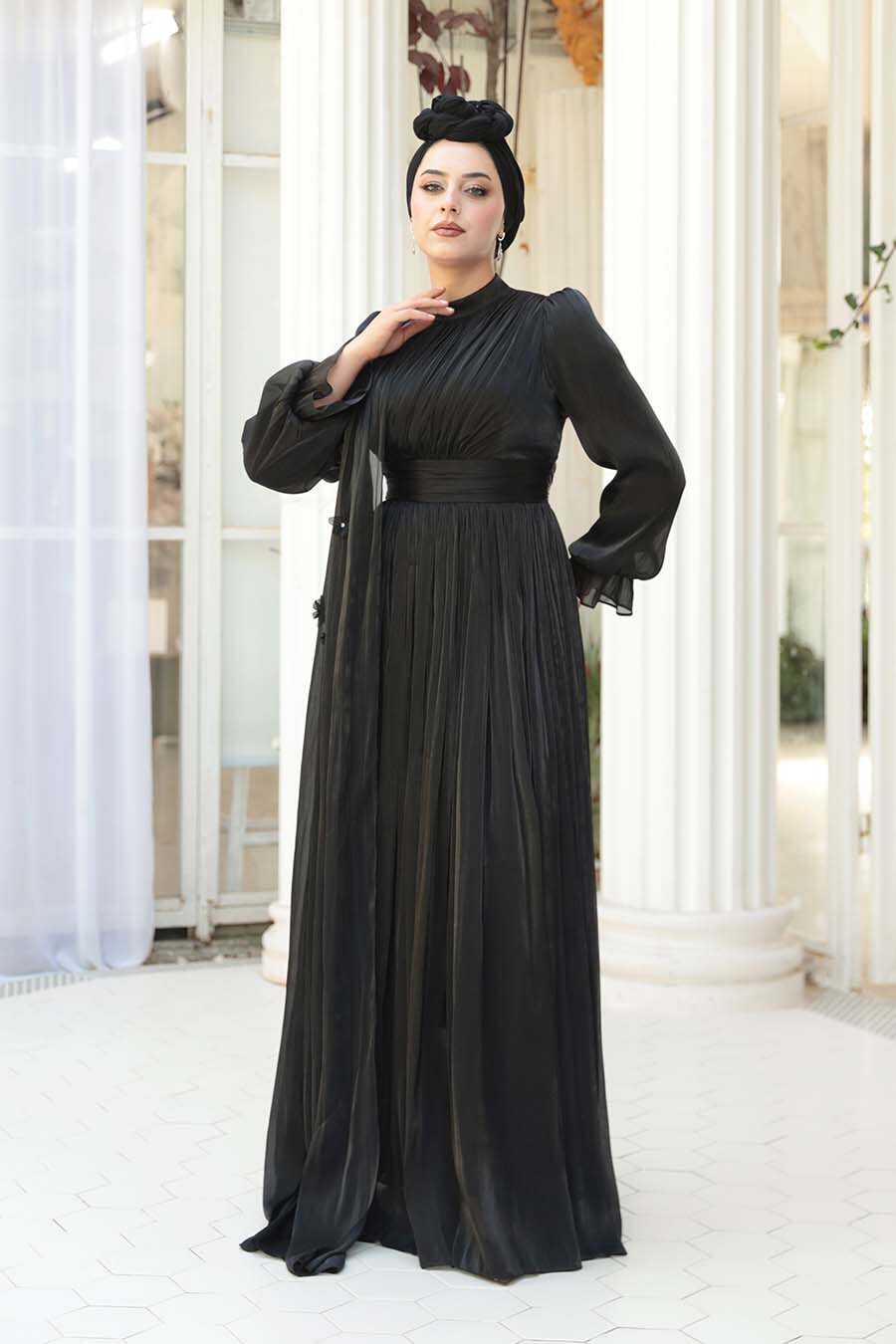 Modest Evening Dress - Cape Detailed Black Modest Evening Dress 5394S