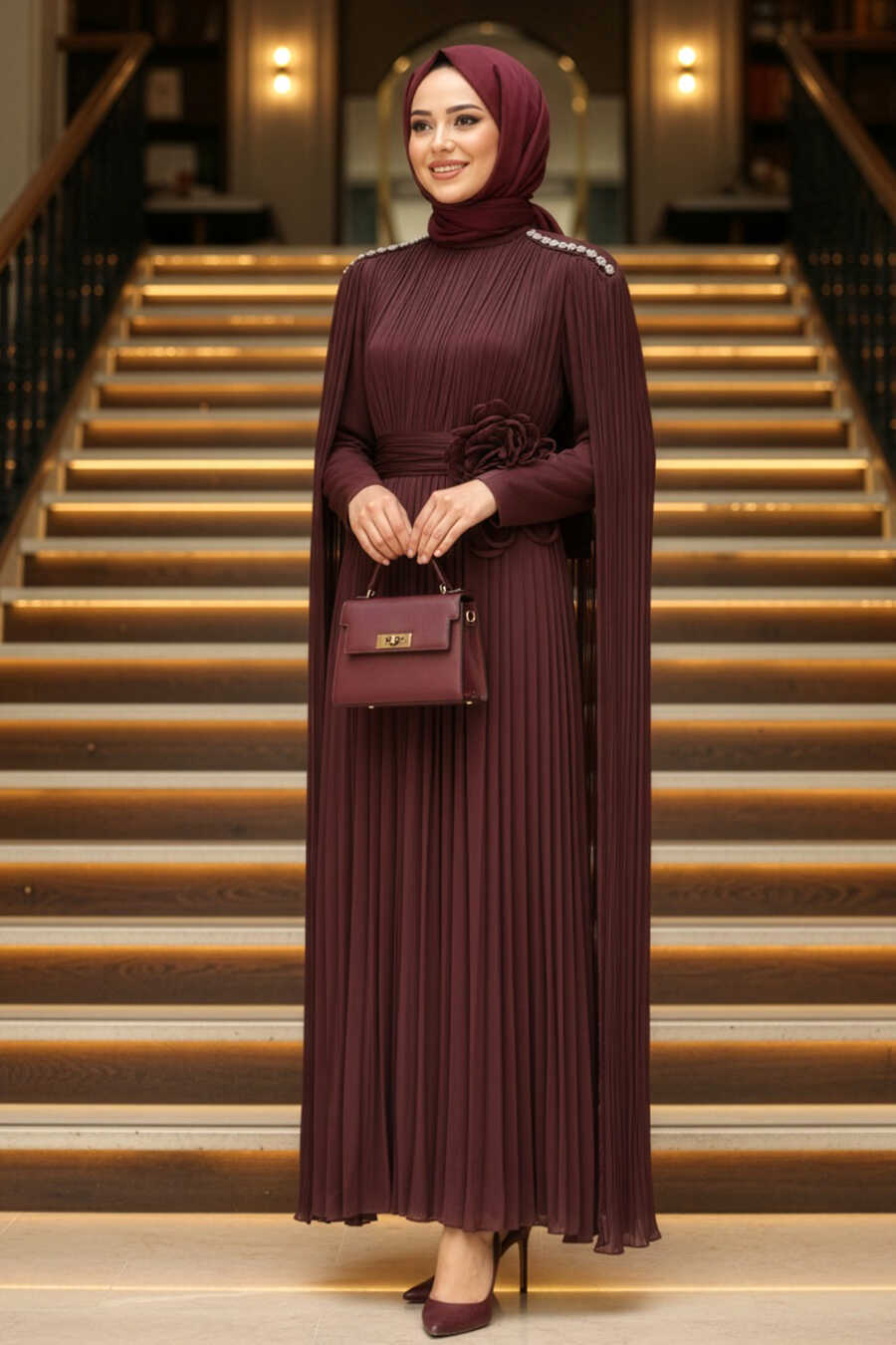 Modest Evening Dress - Cape Detailed Brown Modest Evening Dress 54331KH