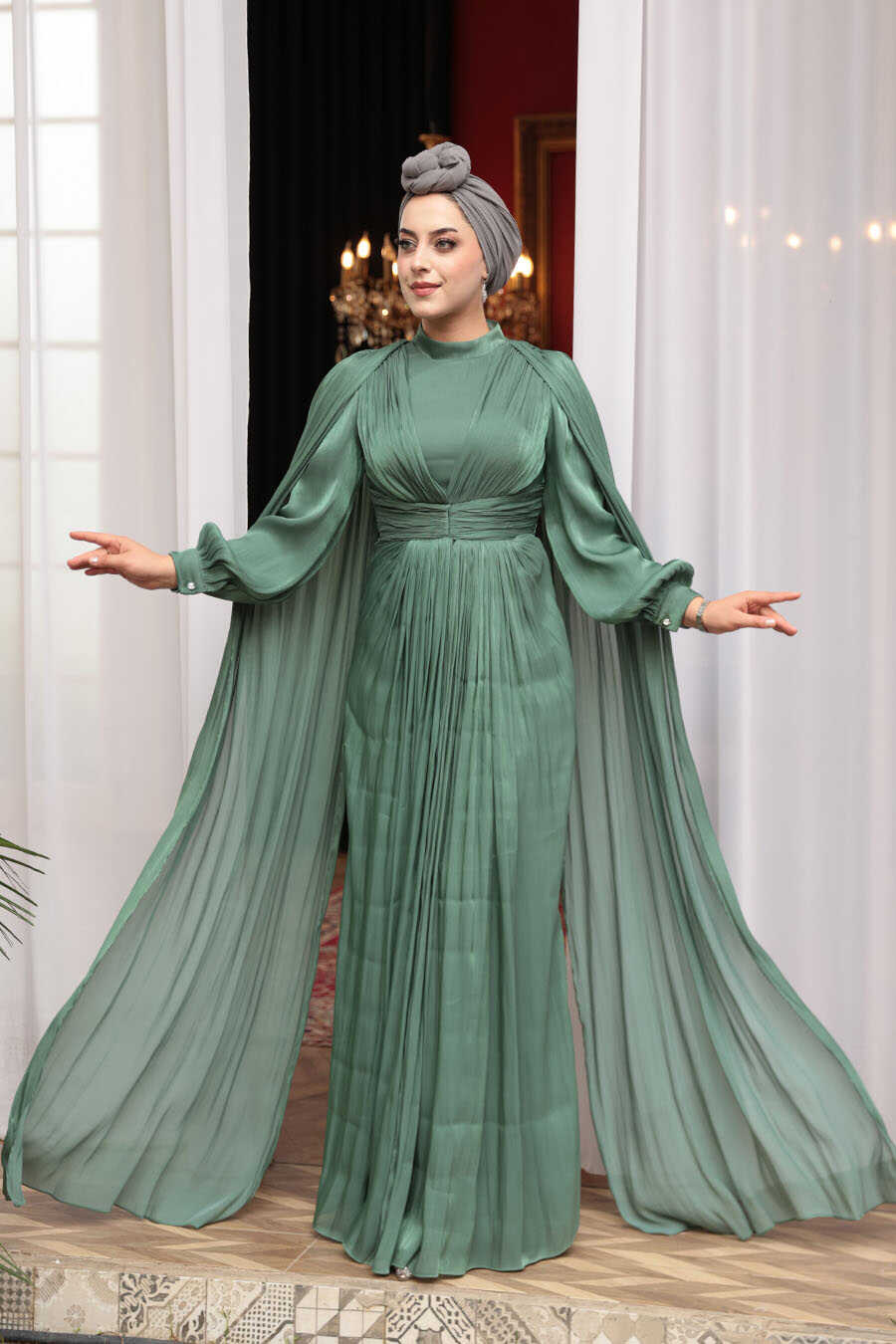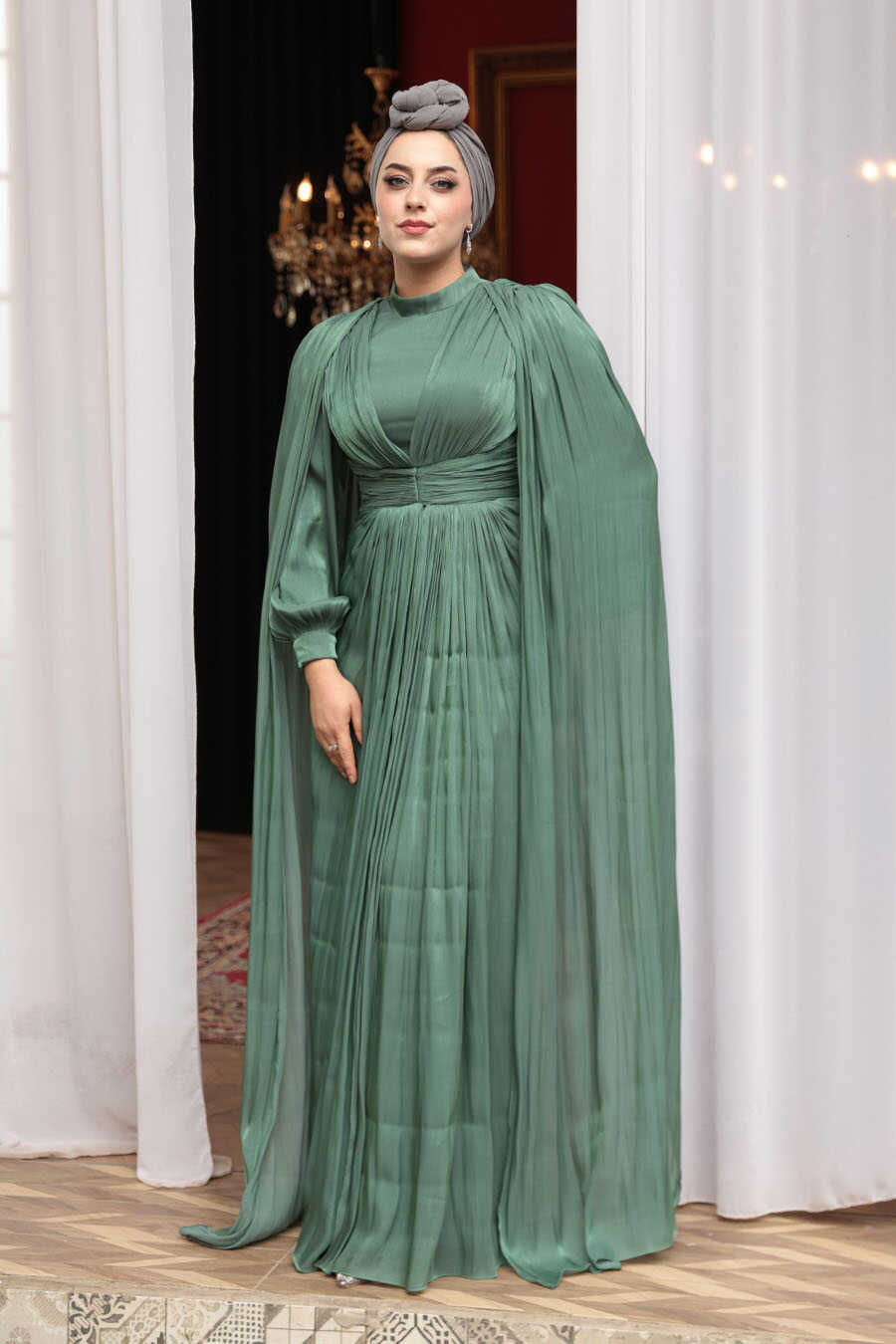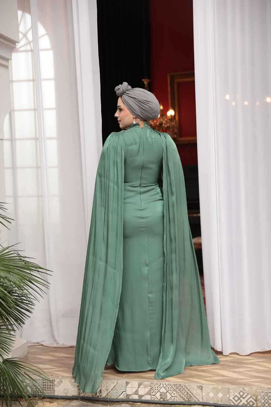 Modest Evening Dress - Cape Detail Green Modest Evening Dress 5447Y