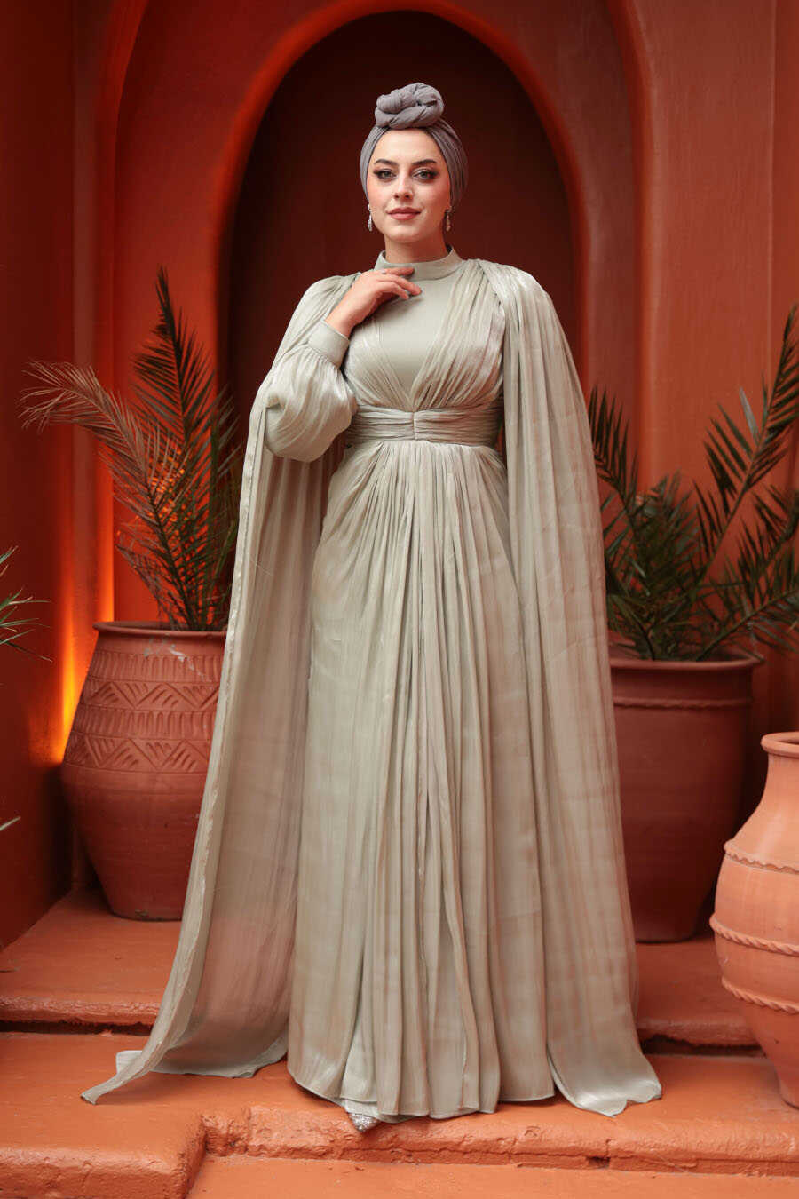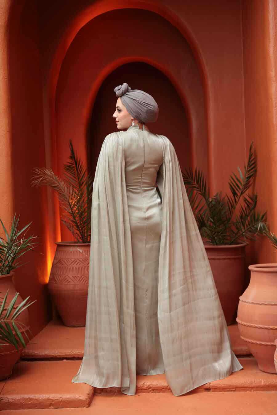 Ürün standart kalıp olup normalde kullandığınız bedeni sipariş vermeniz tavsiye olunur. Özel günler, düğün, nişan, söz, davet ve mezuniyet için aradığınız tesettürlü abiye elbisedir.
