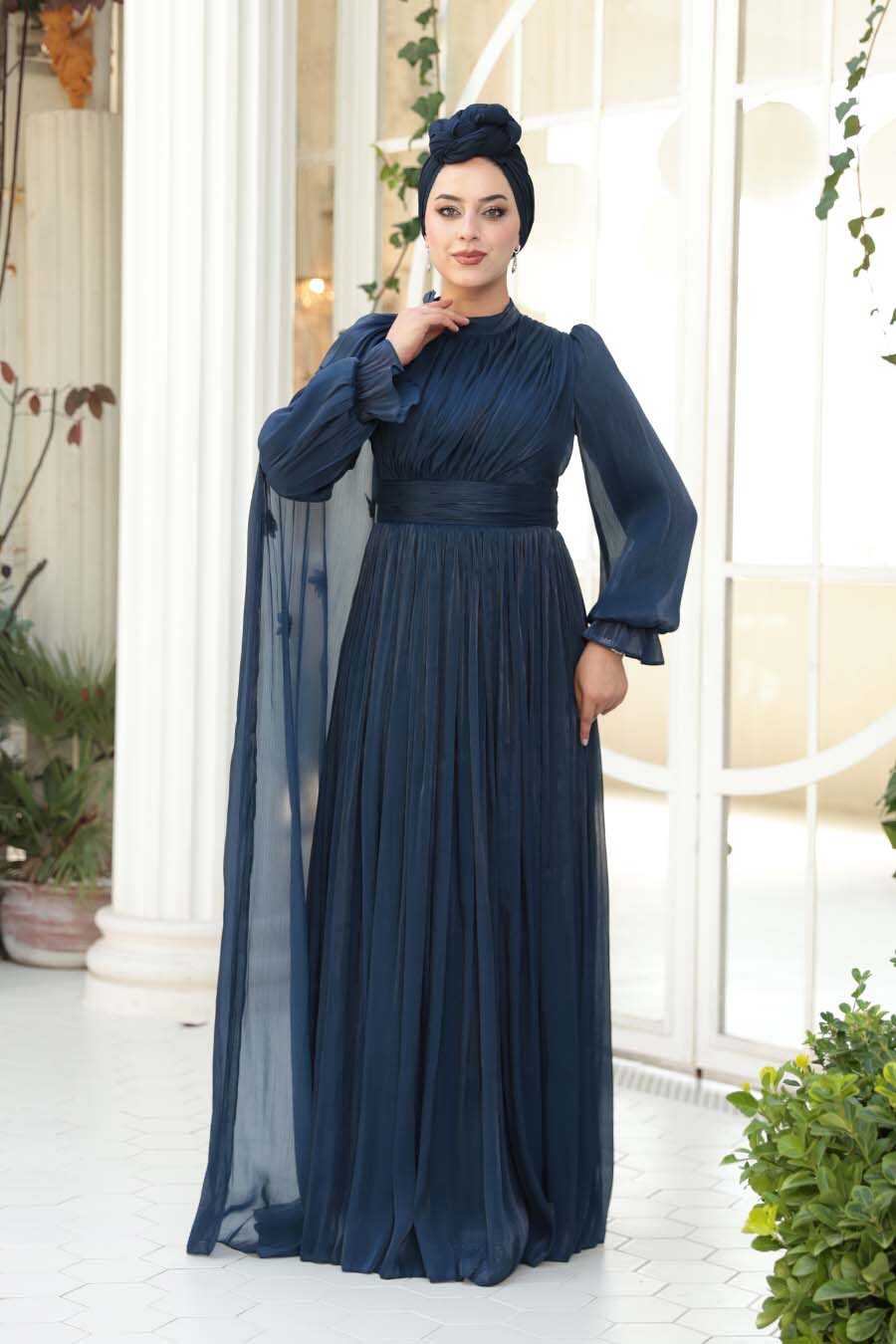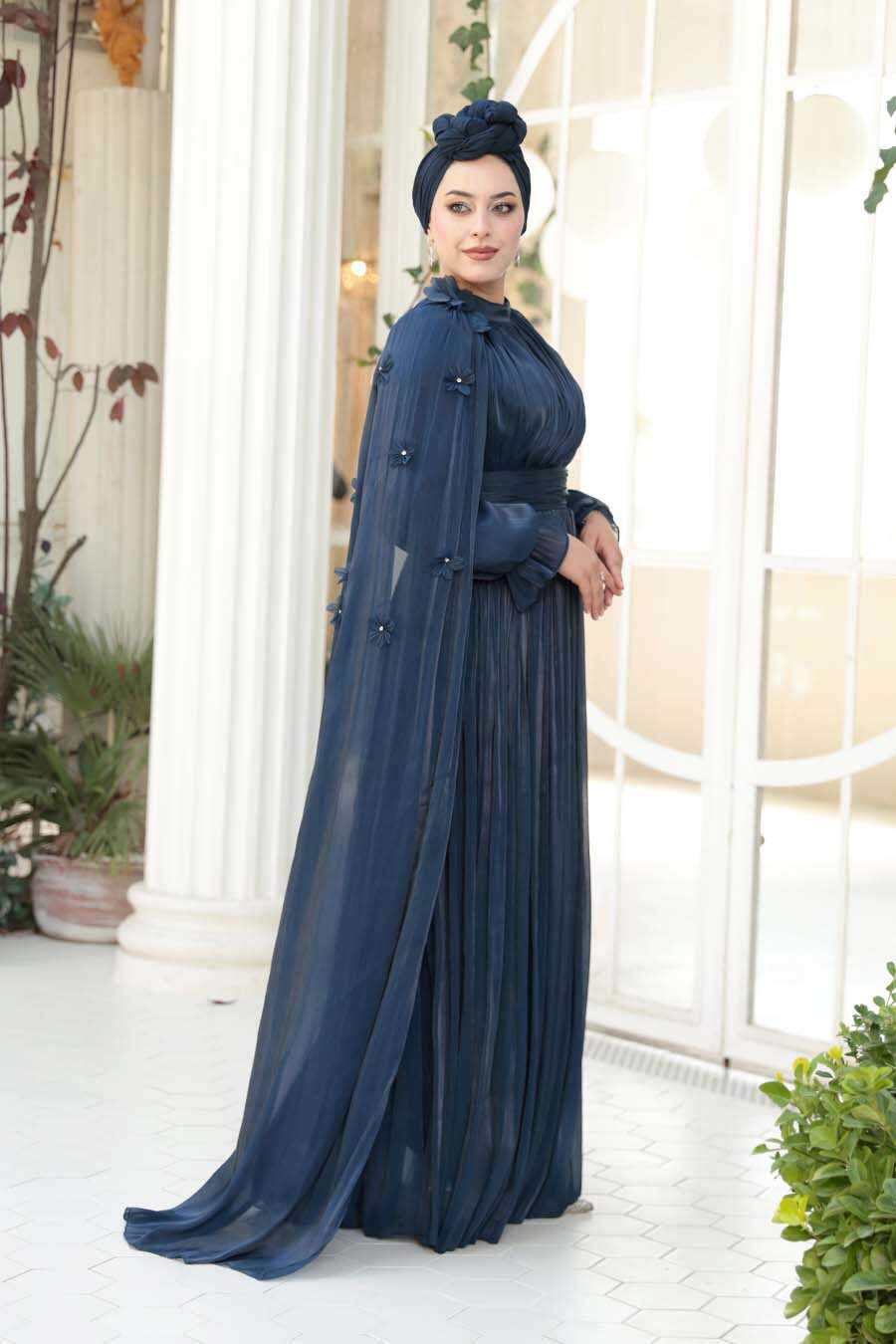 Modest Evening Dress - Cape Detailed Navy Modest Evening Dress 5394L