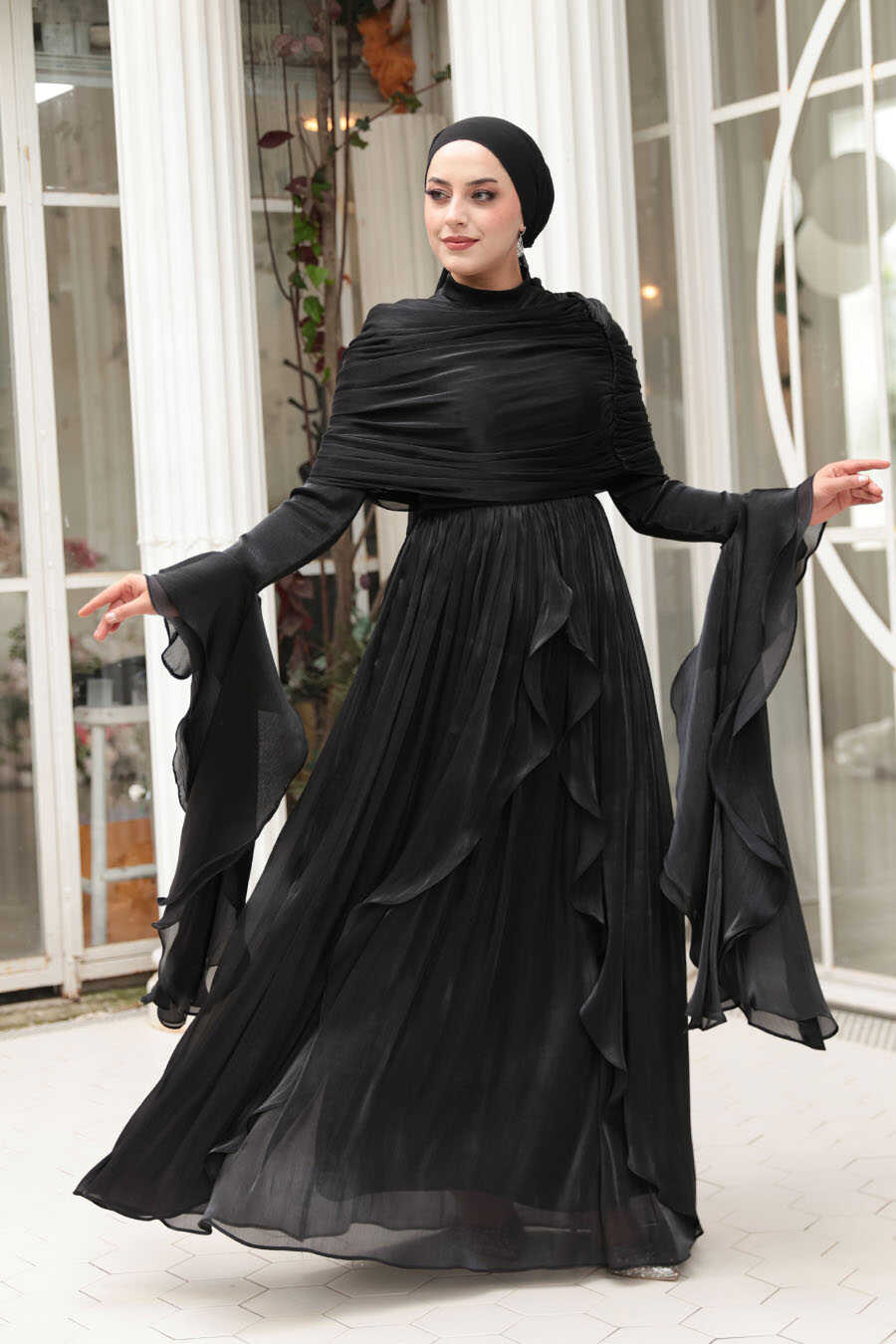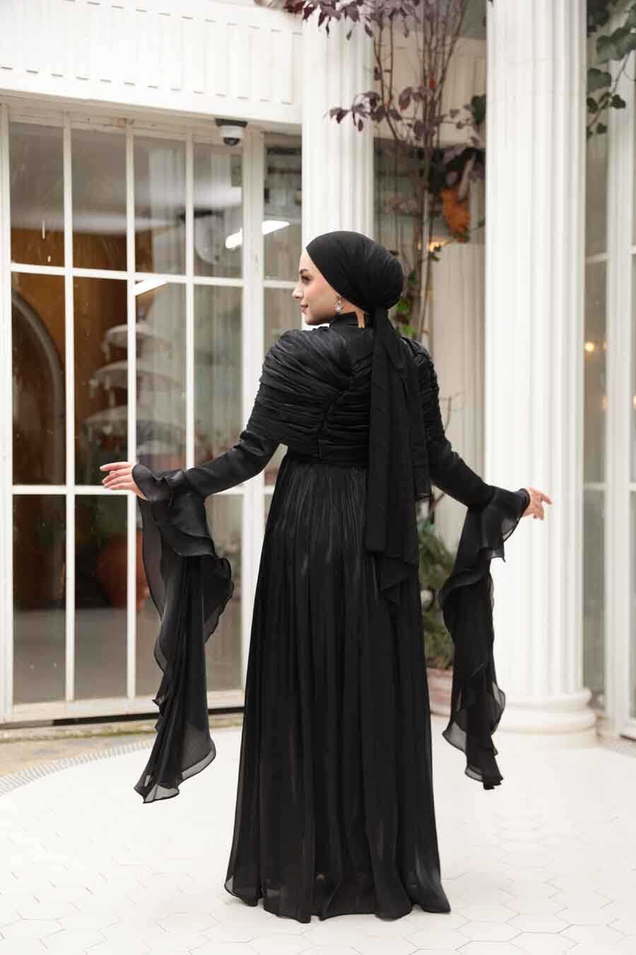 Modest Evening Dress - Ruffle Detailed Black Modest Evening Dress 53981S