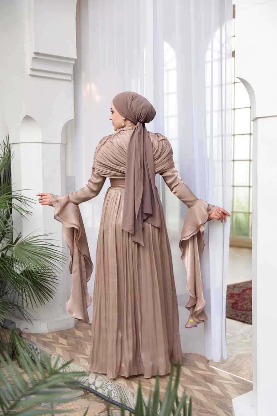 Modest Evening Dress - Ruffle Detailed Mink Modest Evening Dress 53981V