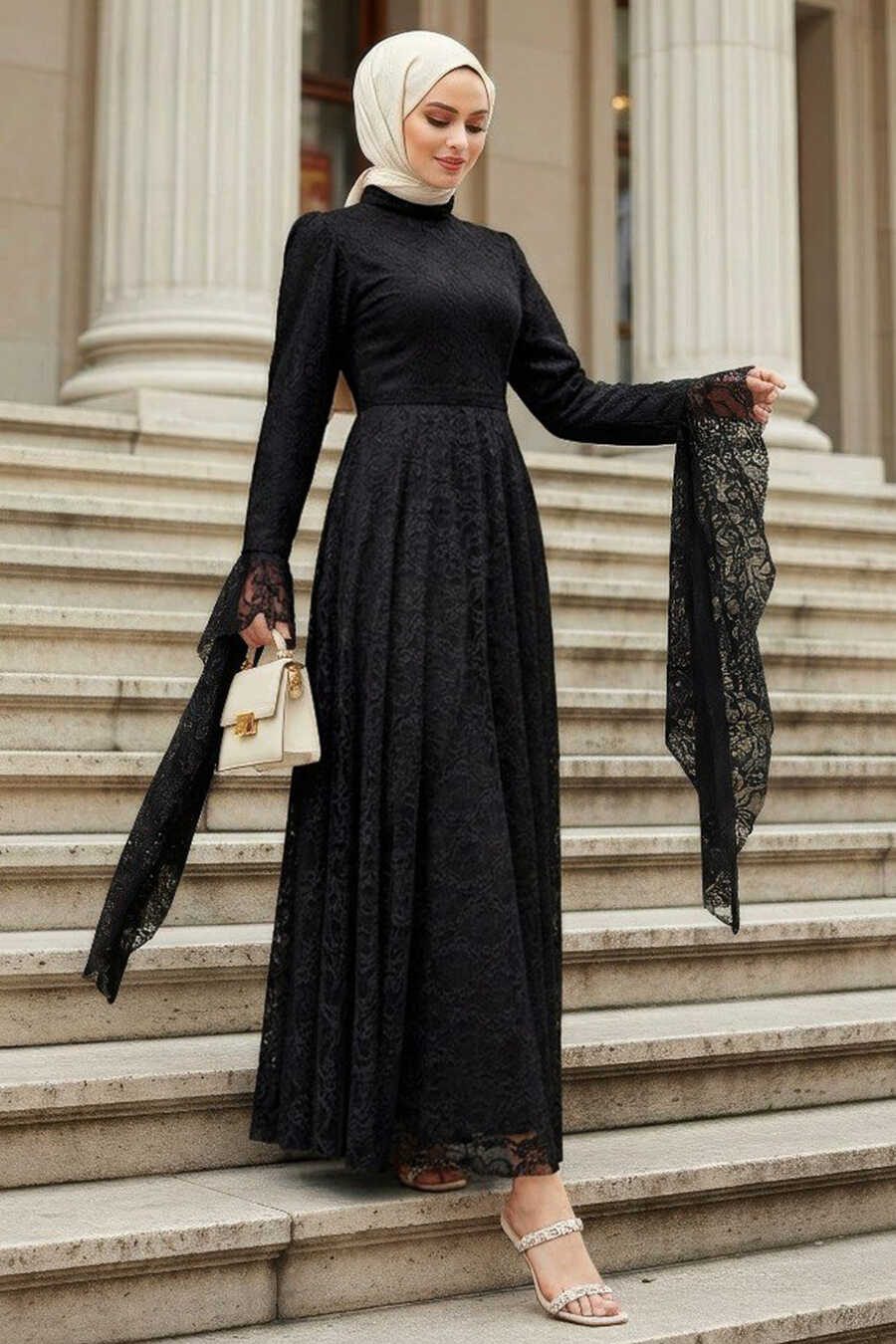 Modest Evening Dress - Lace Detail Black Modest Evening Dress 6294S