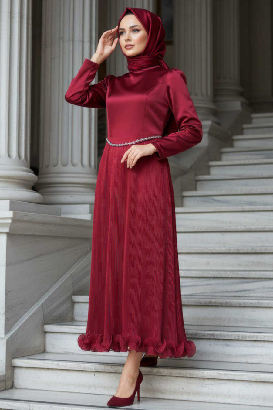 Modest Evening Dress - Pleated Burgundy Modest Evening Dress 6281BR