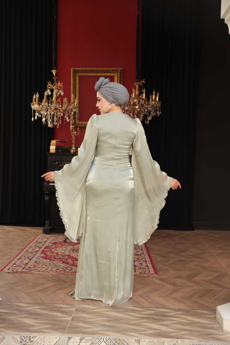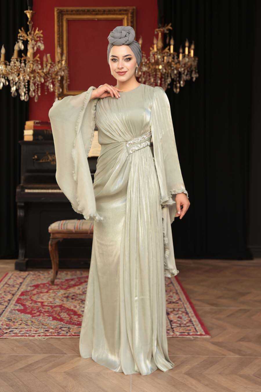 Ürün standart kalıp olup normalde kullandığınız bedeni sipariş vermeniz tavsiye olunur. Özel günler, düğün, nişan, söz, davet ve mezuniyet için aradığınız tesettürlü abiye elbisedir.
