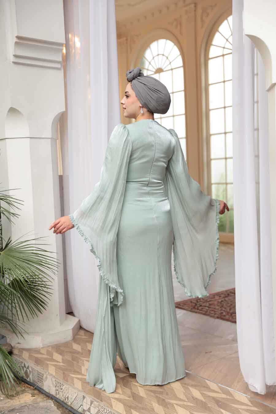 Ürün standart kalıp olup normalde kullandığınız bedeni sipariş vermeniz tavsiye olunur. Özel günler, düğün, nişan, söz, davet ve mezuniyet için aradığınız tesettürlü abiye elbisedir.