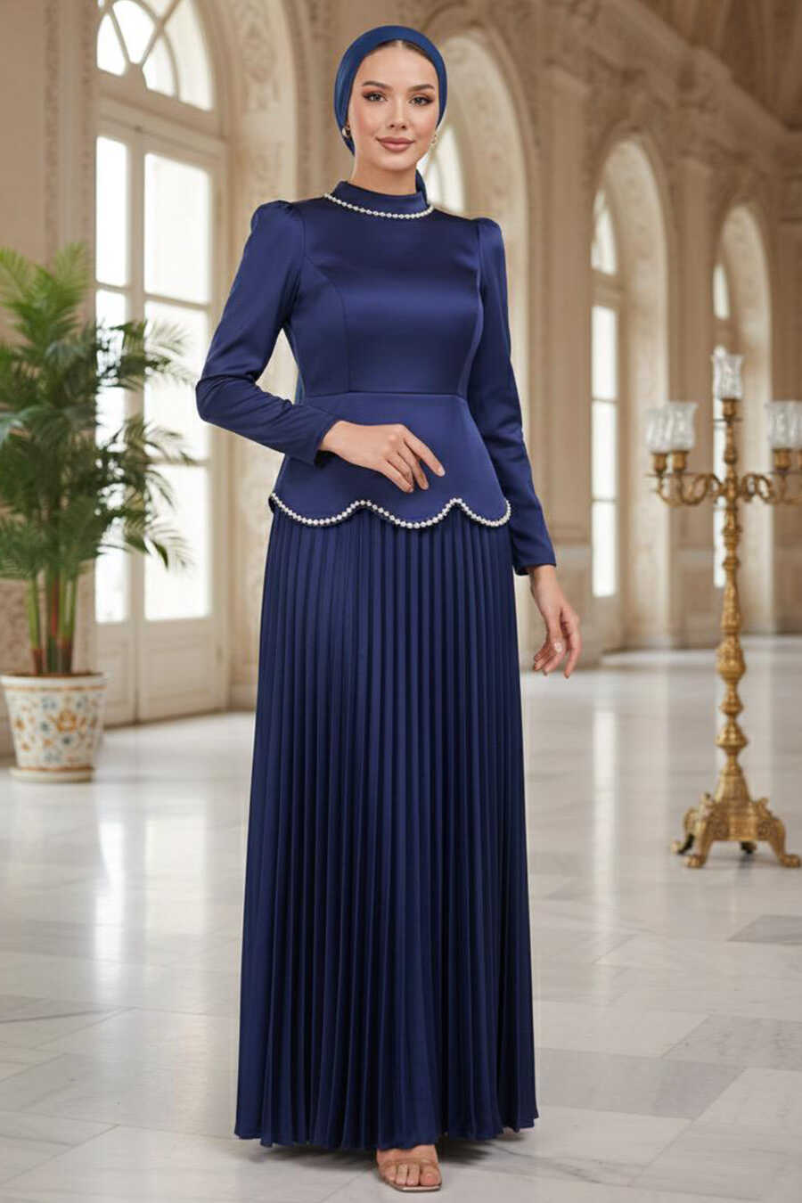 Modest Evening Dress - Satin Dark Indigo Blue Modest Evening Dress 5462KIM
