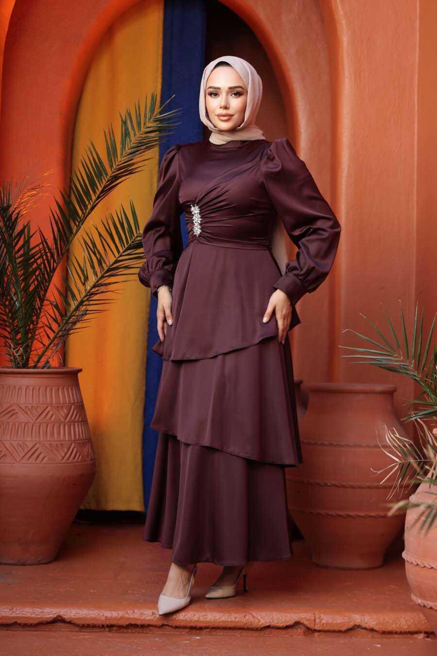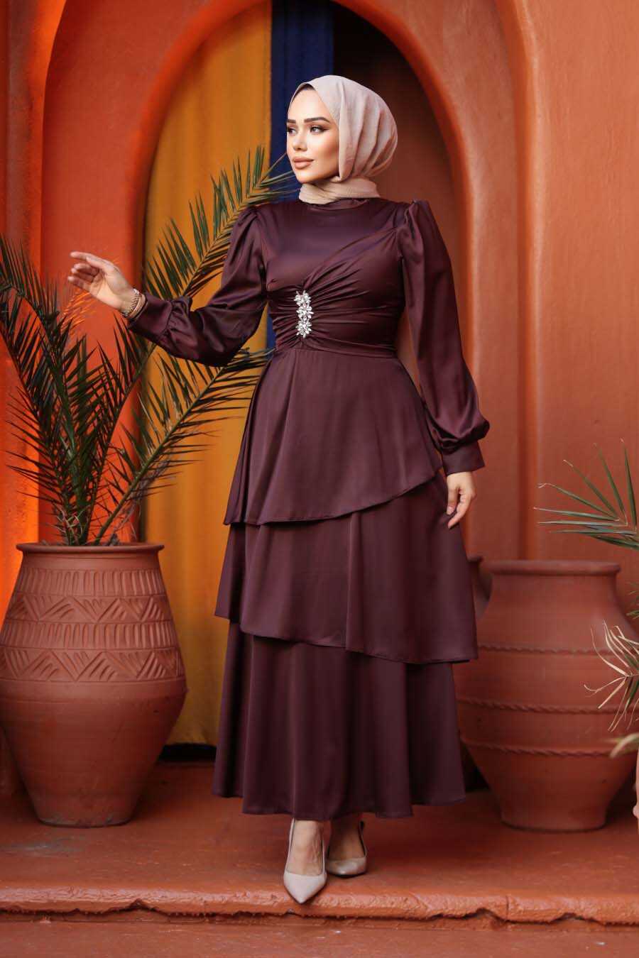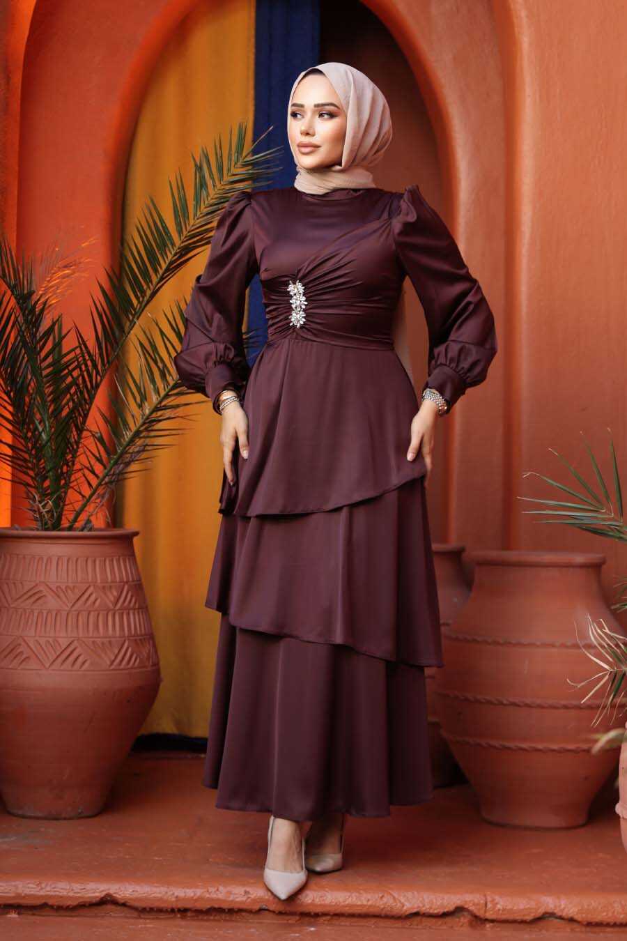 Modest Evening Dress - Tiered Skirt Dark Brown Modest Evening Dress 62291KKH