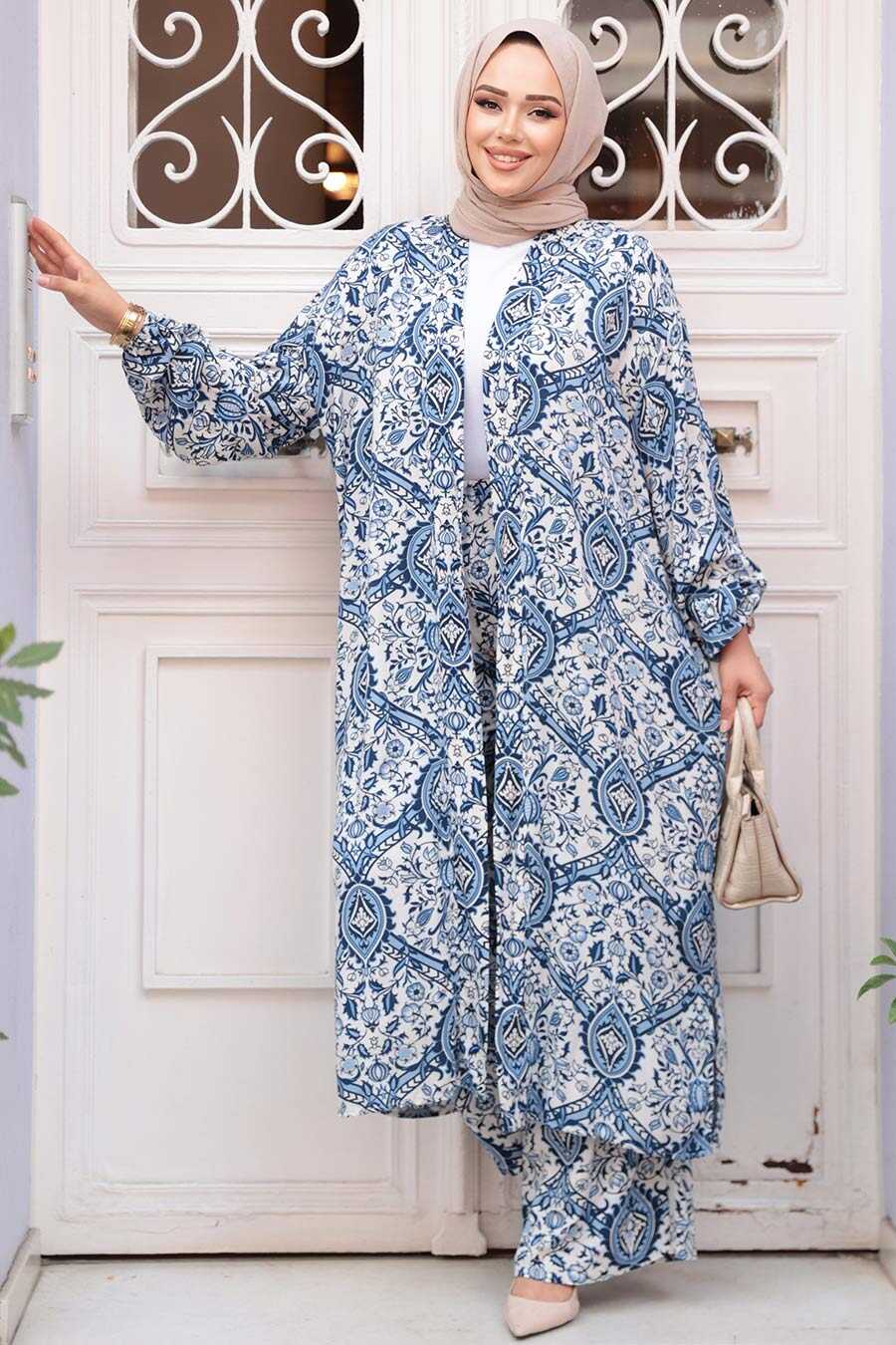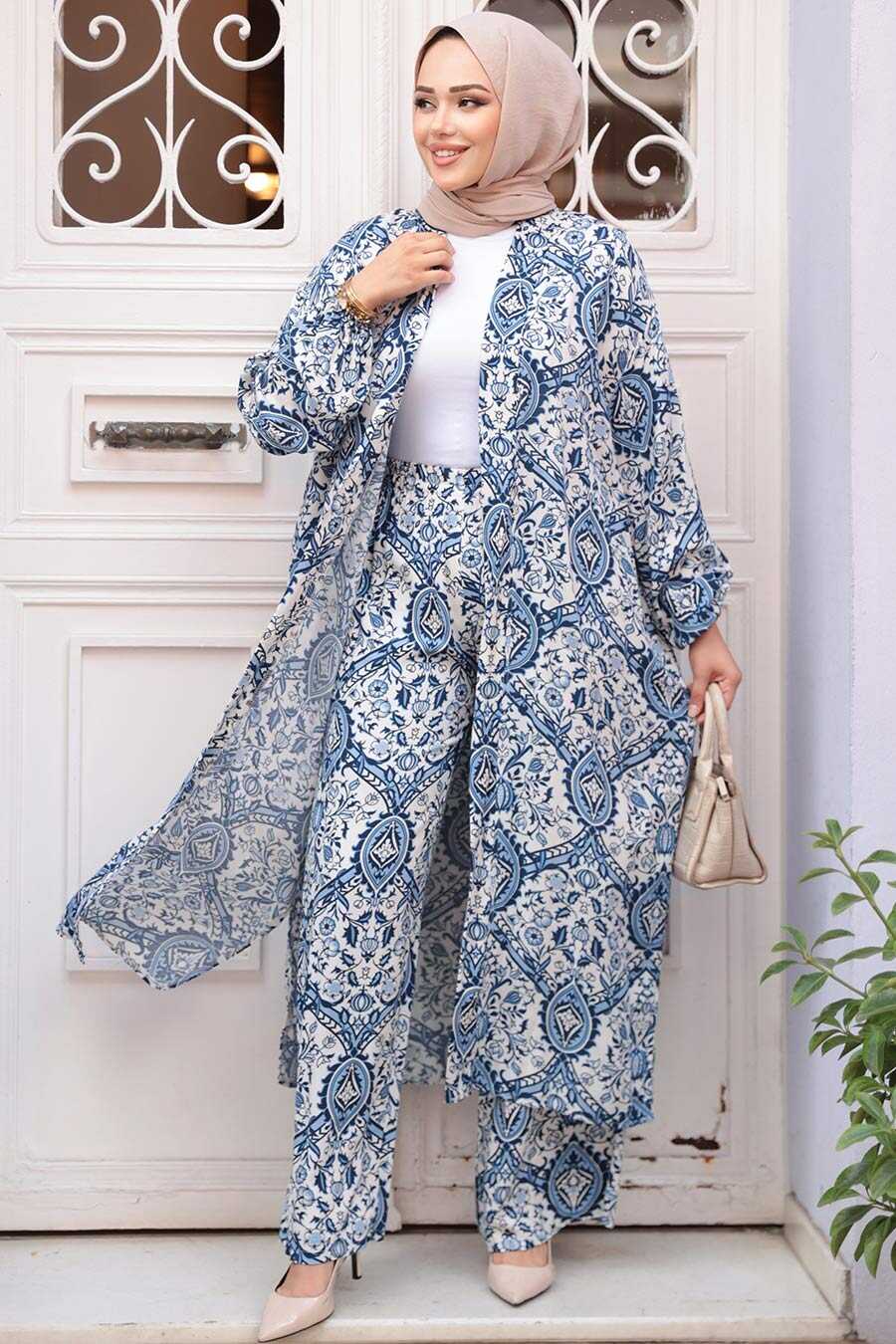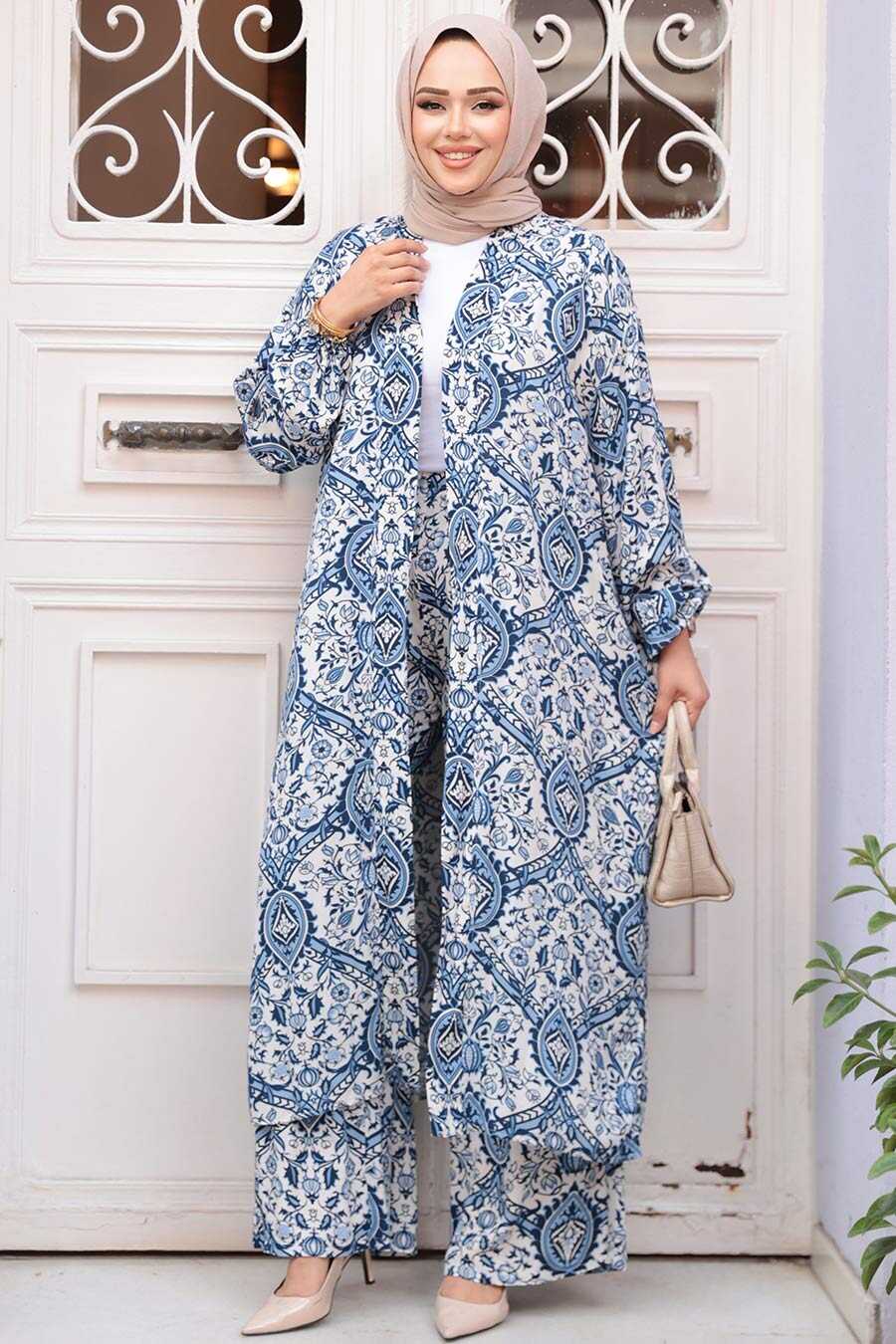 Modest İndigo Blue Kimono Dual Suit 12884IM