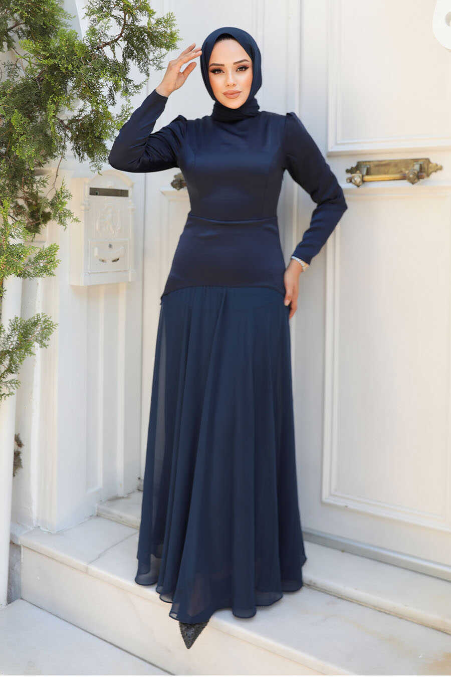 Modest Navy Blue Long Dress 59761L