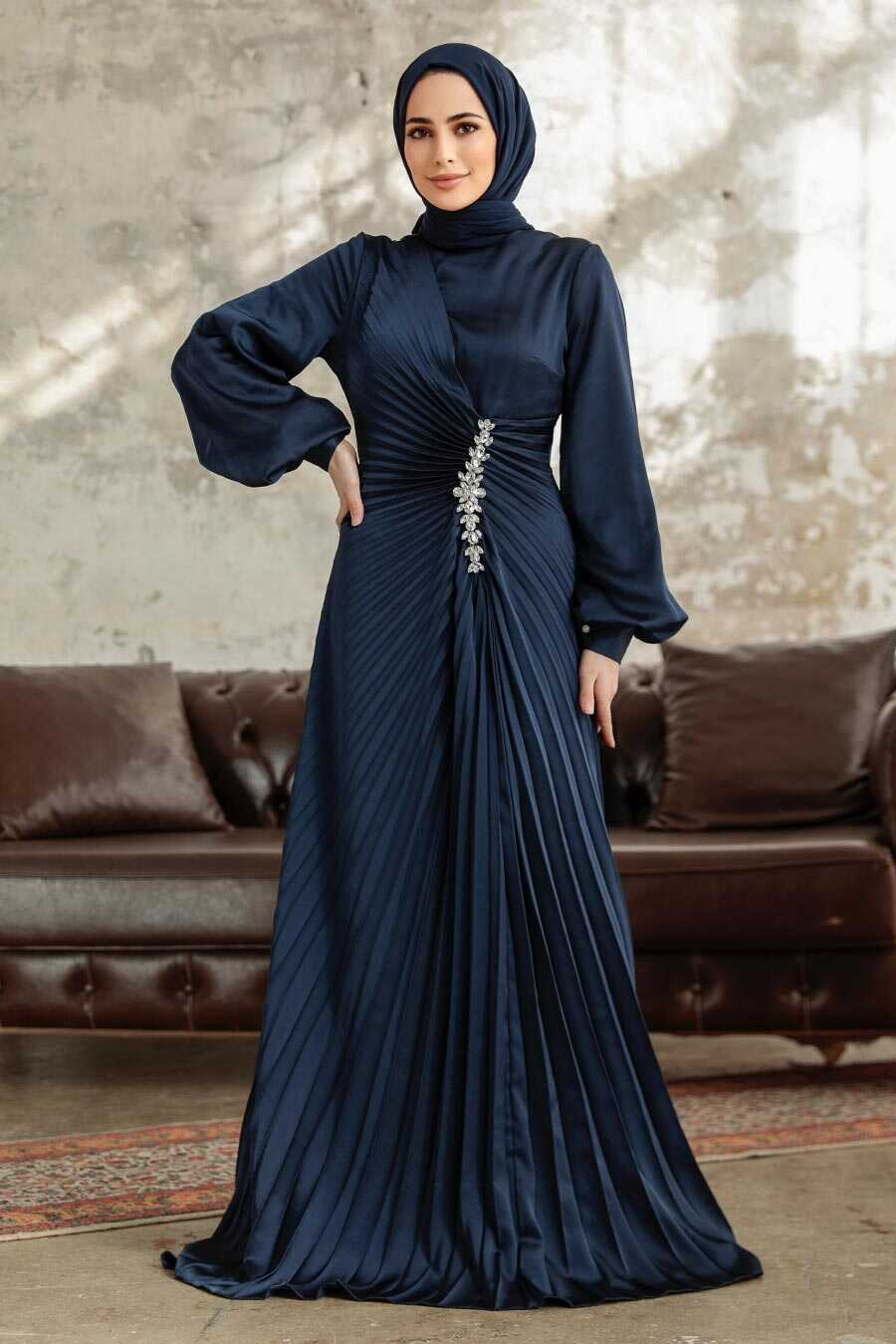 Elegant Navy Blue Islamic Bridesmaid Dress 3933L