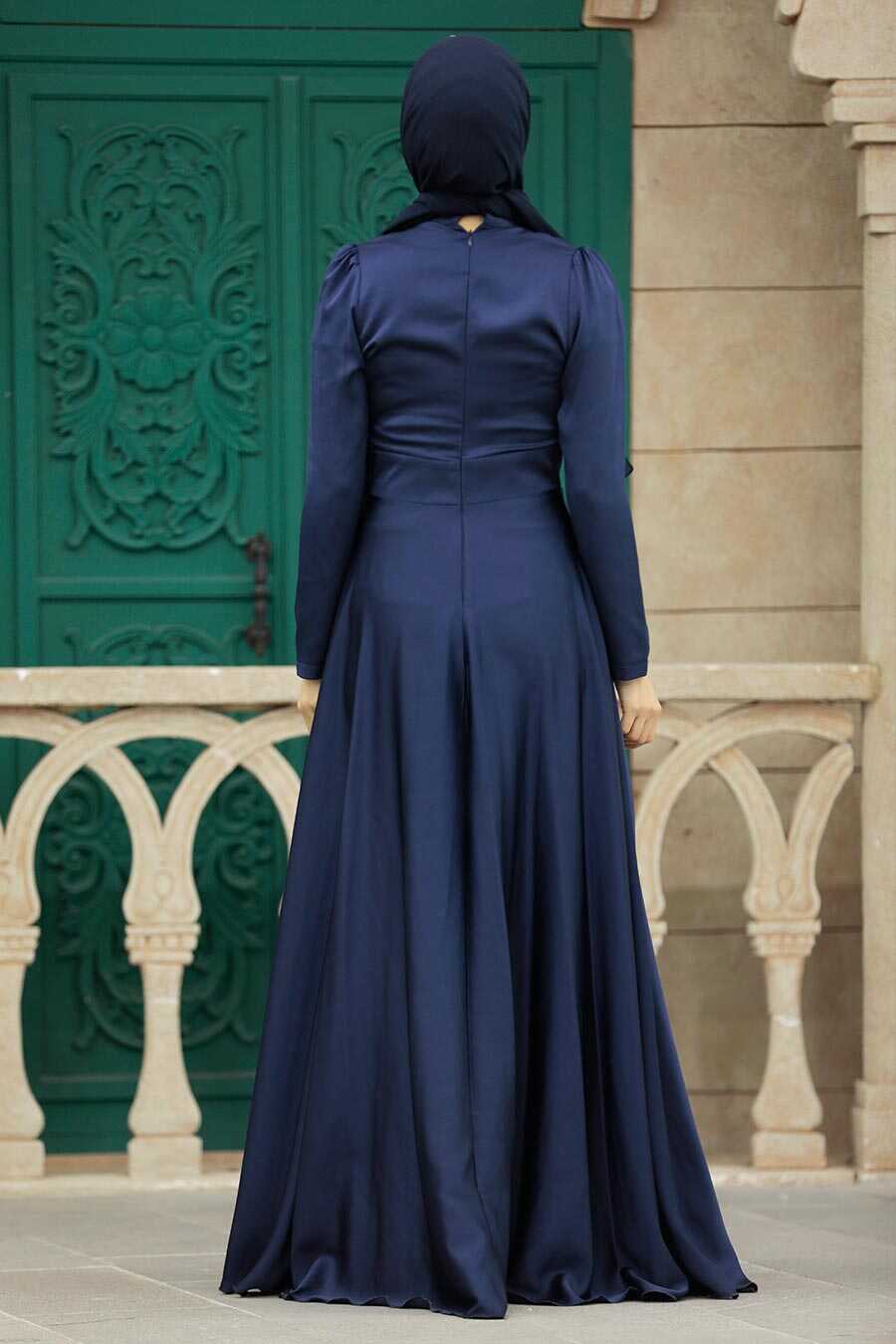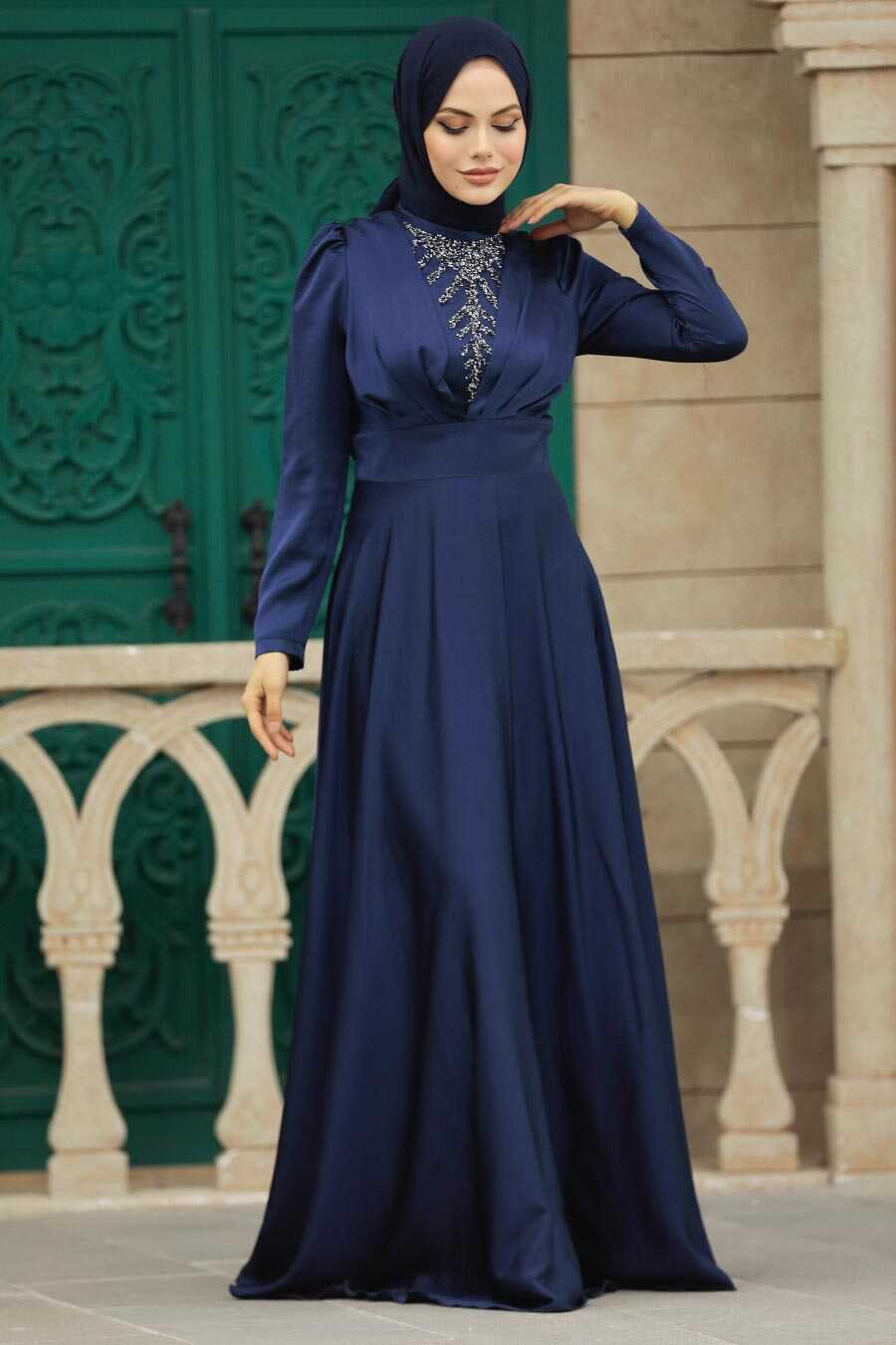 Elegant Navy Blue Muslim Engagement Dress 39011L